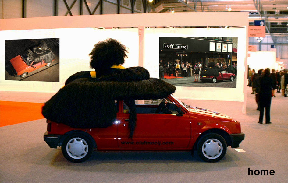 Así son los coches de Olaf Mooij. Son objetos que pasan a tener personalidad. Materia quye cobra viva. Olaf les añade pelo, piezas o incluso peso (como el coche homenaje al mítico sofá Chesterfield) para crear caricaturas que pongan en perspectiva la relación de los seres humanos con las máquinas y dispositivos que los rodean.