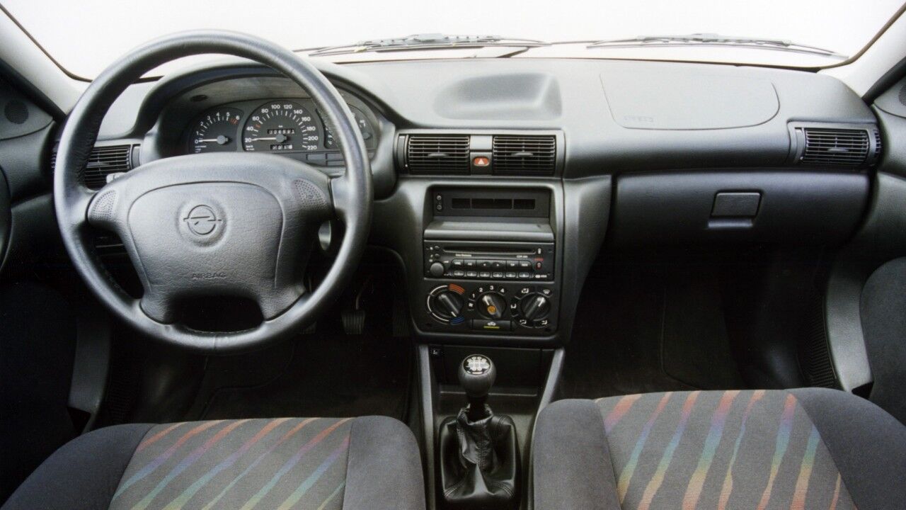 El precepto de “máximo espacio” también se aplicó al habitáculo del Astra. En comparación con el Kadett (E), los ingenieros de Opel dotaron a su nueva criatura de mayor habitabilidad. Eso se conseguía, por ejemplo, colocando el parabrisas 74 milímetros más adelantado, así como aumentando el espacio para la cabeza y las rodillas de los pasajeros traseros hasta en 50 mm. Pese a la ganancia en amplitud, mantuvo la gran eficiencia aerodinámica típica de Opel, con un coeficiente de resistencia aerodinámica (Cx) de 0,30.