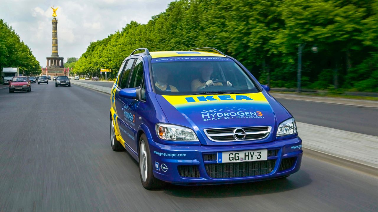 Sobre la base de u Zafira comenzaron los estudios de coches movidos por pila de combustible en la marca. La pila de combustible de hidrógeno suministraba electricidad a un motor asíncrono trifásico que entregaba 75 CV (55 kW) y un par máximo de 251 Nm. Una batería compensadora cubría los picos de potencia.