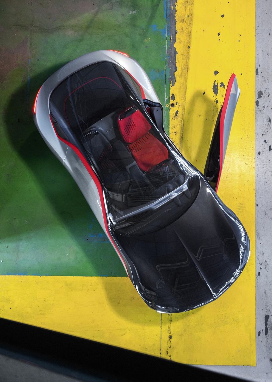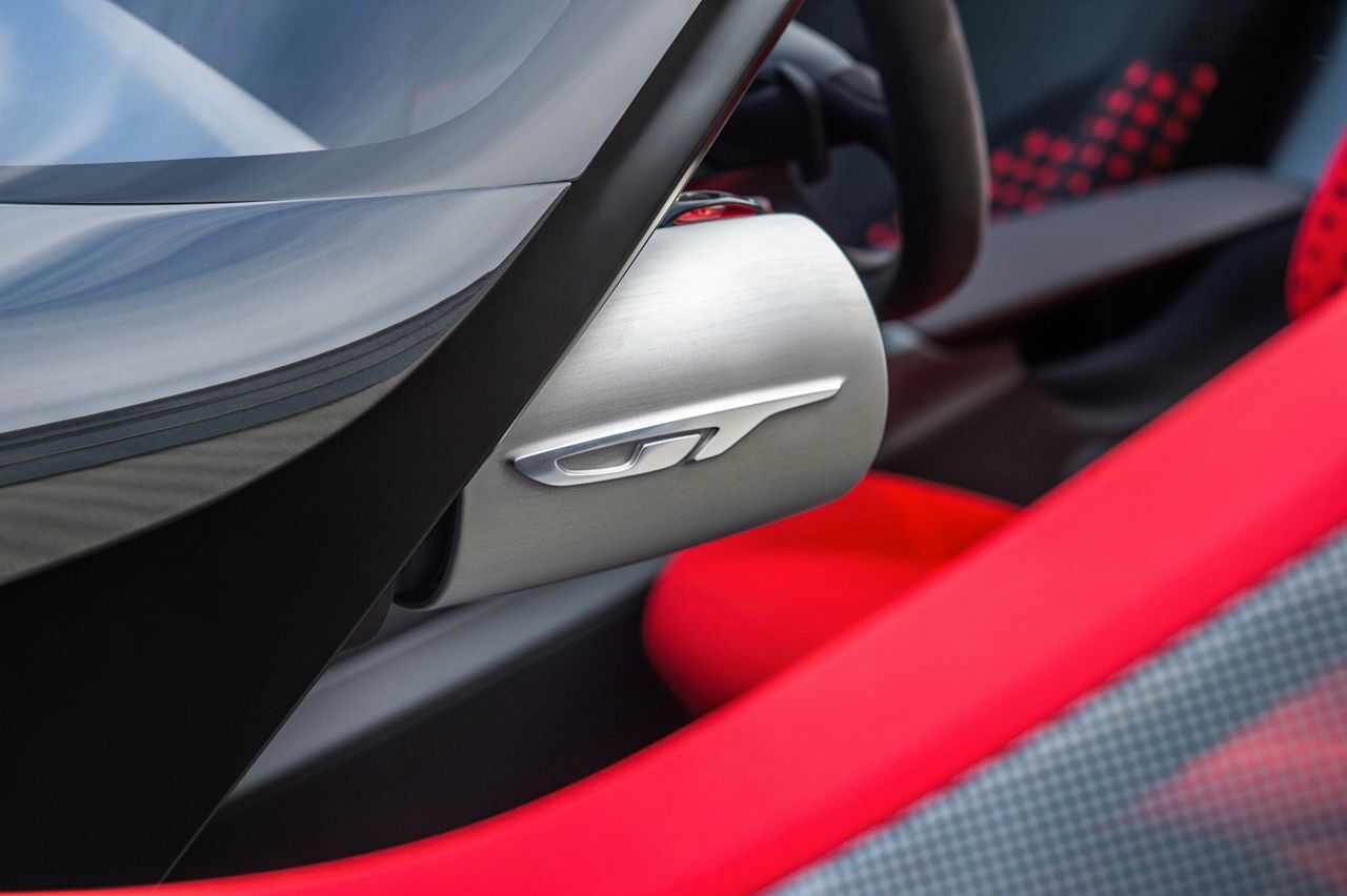 El futuro deportivo de la marca muestra una línea futurista, hasta tal punto que es presentado sin manillas en las puertas, retrovisores y limpiaparabrisas. Este último muy similar a la tecnología Gorilla Glass que presentó Ford para su espectacular modelo GT.