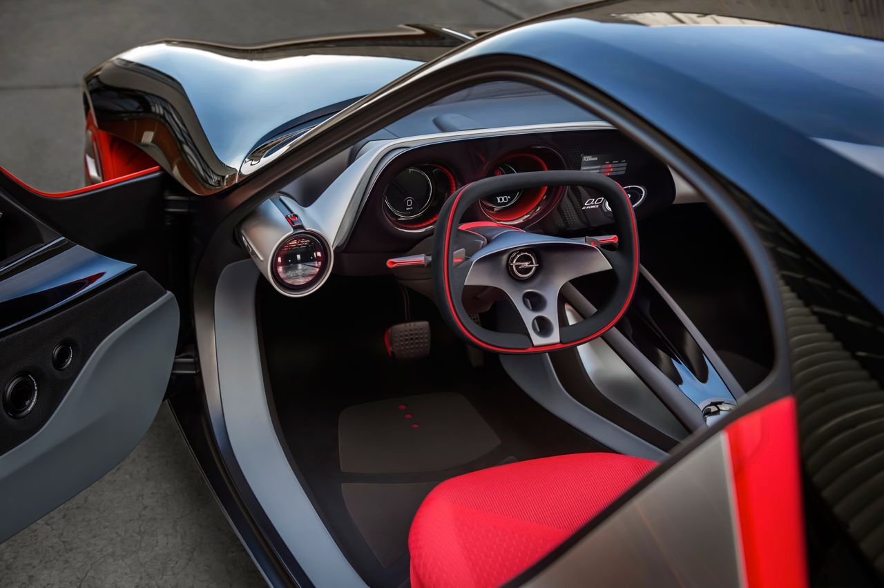 Todo el habitáculo ha sido diseñado para conseguir una mayor ligereza. Y como buen deportivo no faltan unos asientos que se adaptan al contorno del conductor y su acompañante, además de un volante que recuerda a los Opel GT de 1968.