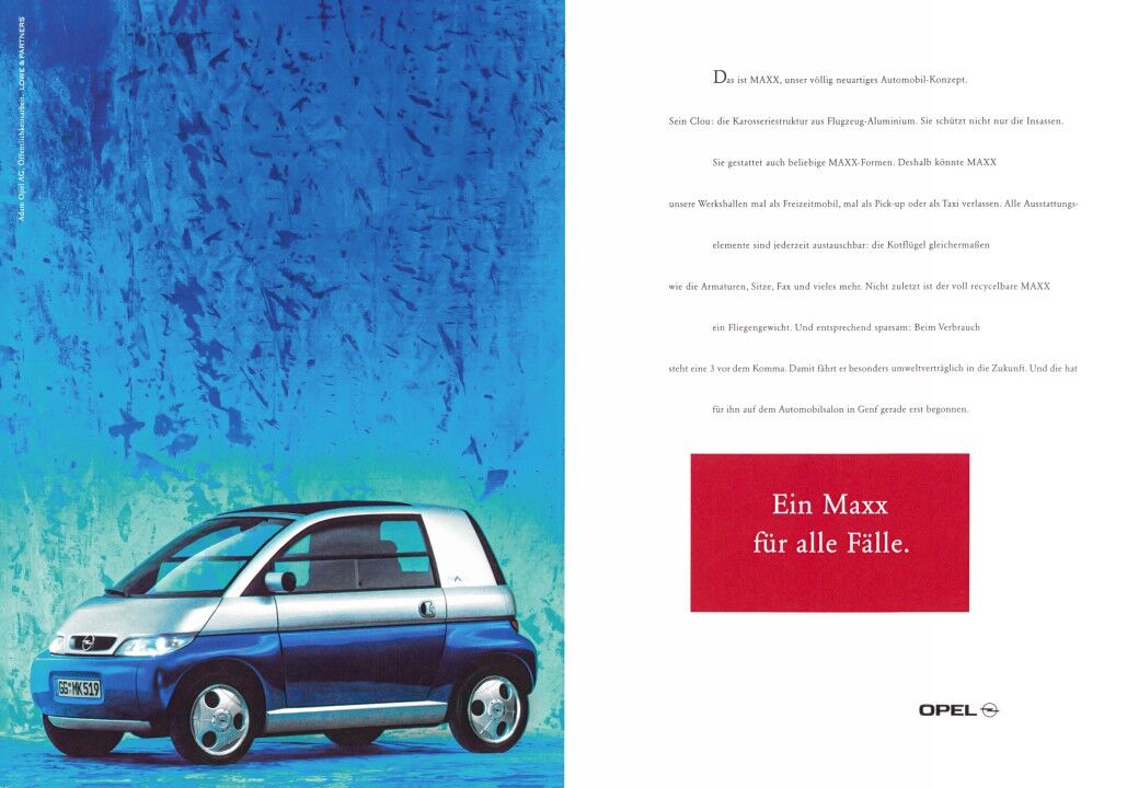 Parece que los bloques de tres cilindros, las plataformas modulares y un corte eminentemente urbano son cosas más de los tiempos que corren que de hace varias décadas. Nada más lejos de la realidad, ya que, entre otros muchos prototipos del pasado, Opel presentó en Maxx Concept en el Salón del Automóvil de Ginebra de 1995, tres años antes de que el smart fortwo llegase al mercado.