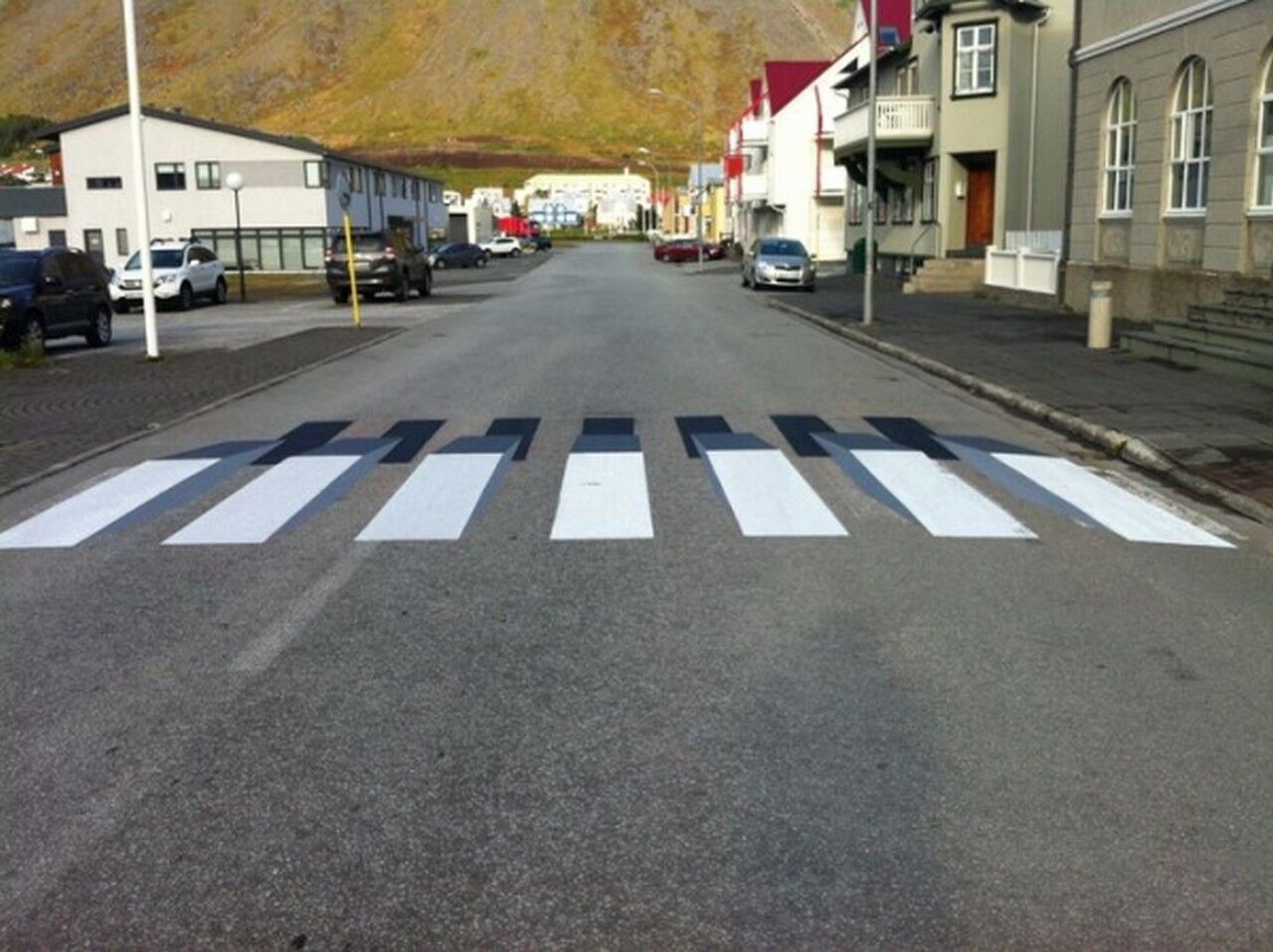 Un pequeño pueblo de Islandia ha pintado unos originales pasos de cebra que gracias a un efecto óptico consiguen que los conductores reduzcan la velocidad. Ísafjörðu res una localidad de menos de 3.000 habitantes que se ha hecho famosa por instalar estos pasos de peatones en 3D.