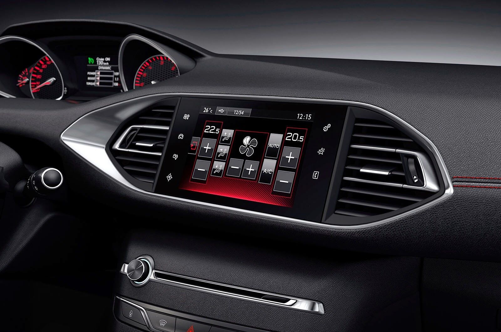 En el habitáculo, ambos modelos adquieren un tapizado exclusivo con pespuntes en color rojo, volantes y pedales deportivos, los montantes interiores y el techo se tapizan en color antracita. En el caso de los 308, se puede equipar de forma opcional con el Driver Sport Pack. Al activar este modo varía la asistencia de la dirección, la gestión del cambio en las versiones automáticas, el mapa motor, aparecen medidores de fuerzas G y telemetría en su pantalla central, además de que varía el sonido que proviene del propulsor. Por cierto, la pantalla central táctil de ambos modelos añade el tema Red Line, con tonos rojos.