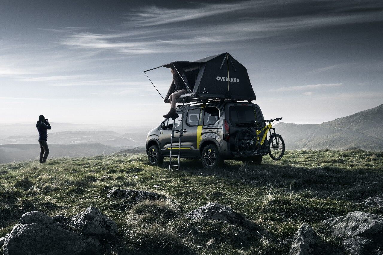 Mención aparte para la tienda de campaña Overland, hecha por el especialista Autohome, que se sitúa sobre las barras del techo. Su instalación y montaje son sencillos y para subir cuenta con una cómoda escalera de mano. En la parte trasera puede engancharse una bicicleta, y que mejor opción que la Peugeot eM02 F2 Powertube. Esta bicicleta de montaña de la amrca cuenta con asistencia eléctrica y doble suspensión.