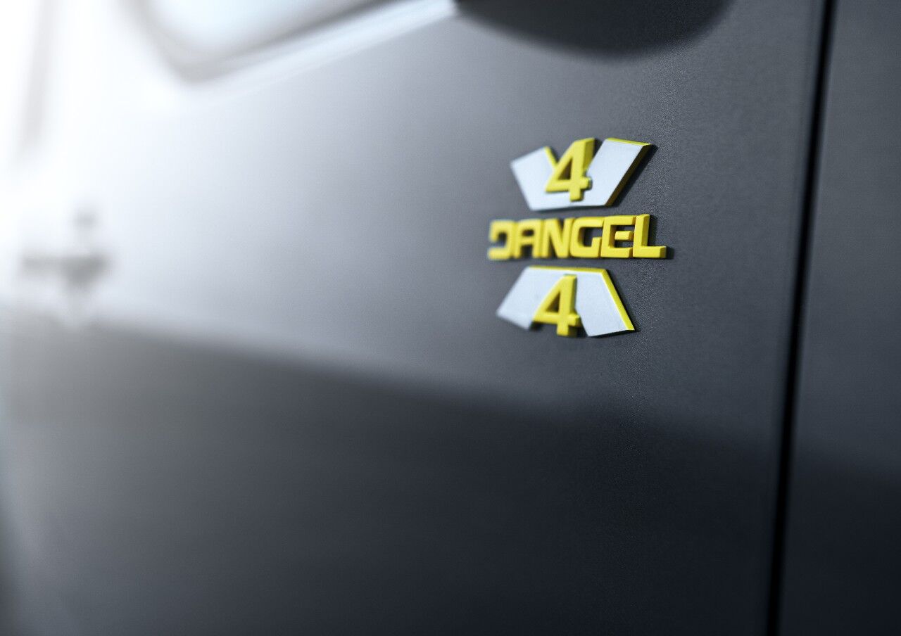 En este ejemplar se combinan las bondades de una furgoneta y un todoterreno. El exterior es muy llamativo debido en primer lugar a una decoración en gris con detalles amarillos y negro mate. Pero si nos fijamos veremos que se han reforzado las protecciones y que cuenta con elementos específicos. La parrilla es diferente, también las llantas de 16 pulgadas en negro o los gráficos con el nombre del modelo.