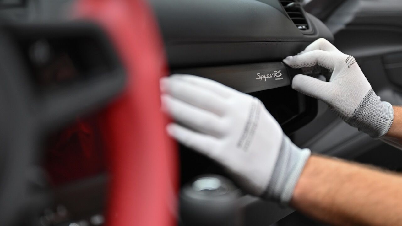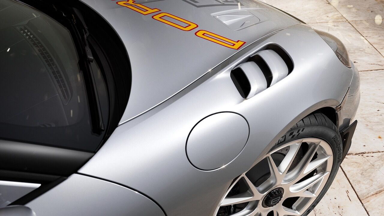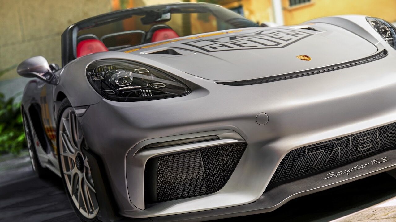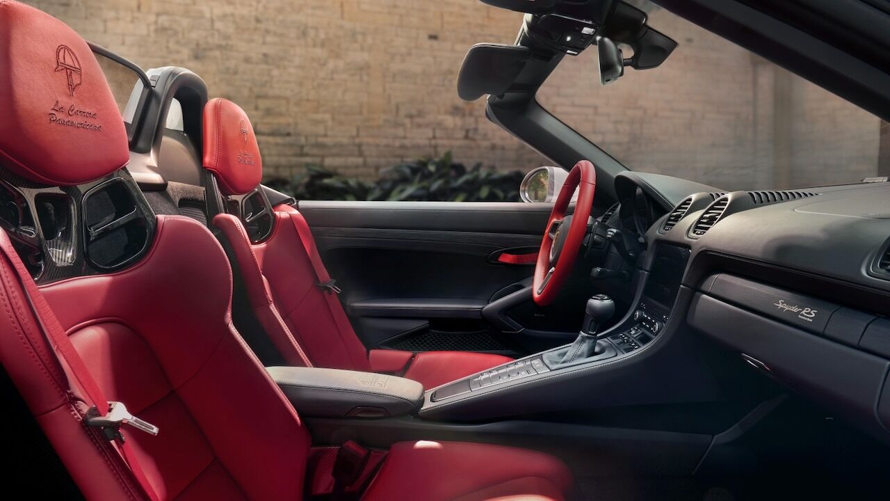Poco tiene que ver el rendimiento del 718 Spyder RS con el de aquel deportivo de los años 50 que recorrió más de 3.000 kilómetros en cinco días por el arduo terreno de México. Sin embargo, ambos comparten ahora ese color plateado en sus exteriores, incluyendo las piezas de fibra de carbono del paquete Weissach. En contraste va el número 55 en amarillo y las franjas de las aletas traseras en rojo. También merecen mención especial las llantas de magnesio con el logotipo TAG Heuer y pinzas en negro para los frenos carbocerámicos.