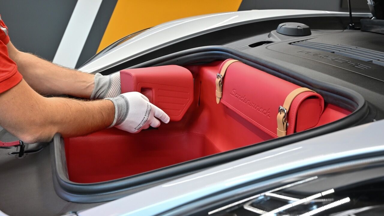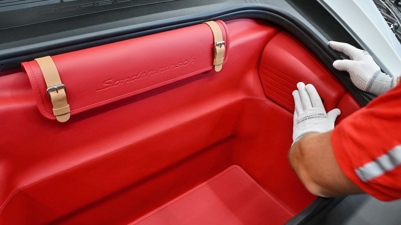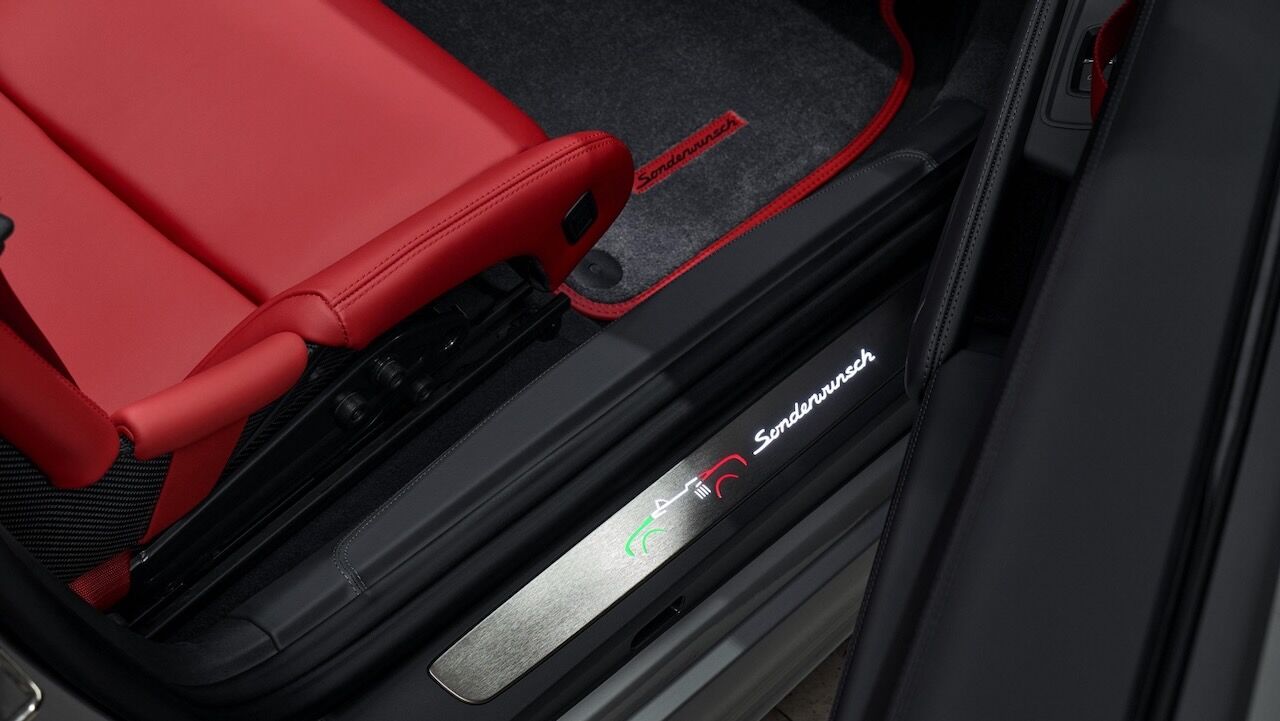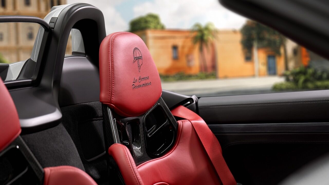 Por dentro, el Porsche 718 Spyder RS Panamericana Special se tiñe de negro y cuenta con inserciones de cuero y detalles en cuero rojo Carmín en volante y otras zonas. No puede faltar la inscripción Sonderwunsch y los colores de la bandera mexicana, además de un soporte para reloj integrado bajo el reposabrazos central. Eso se debe a que junto a este modelo se ha lanzado el Tag Heuer Carrera Chronograph Tourbillon x Porsche Panamericana, un reloj muy especial que está limitado a 255 unidades.