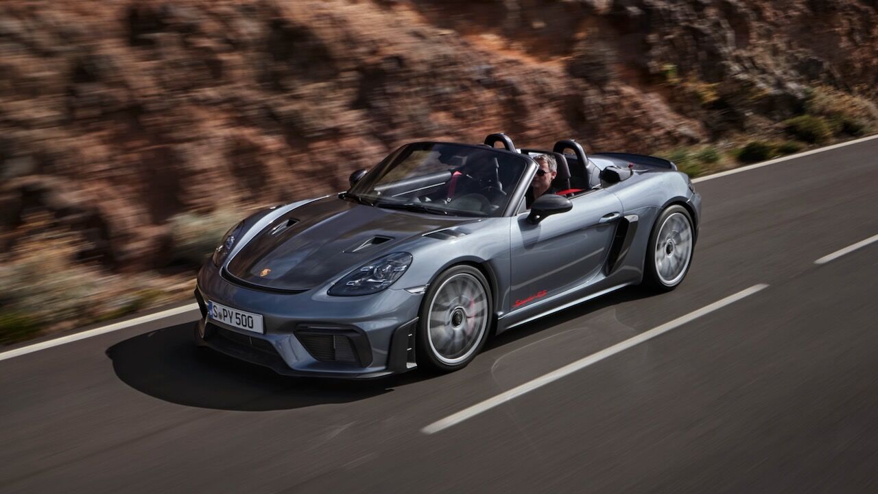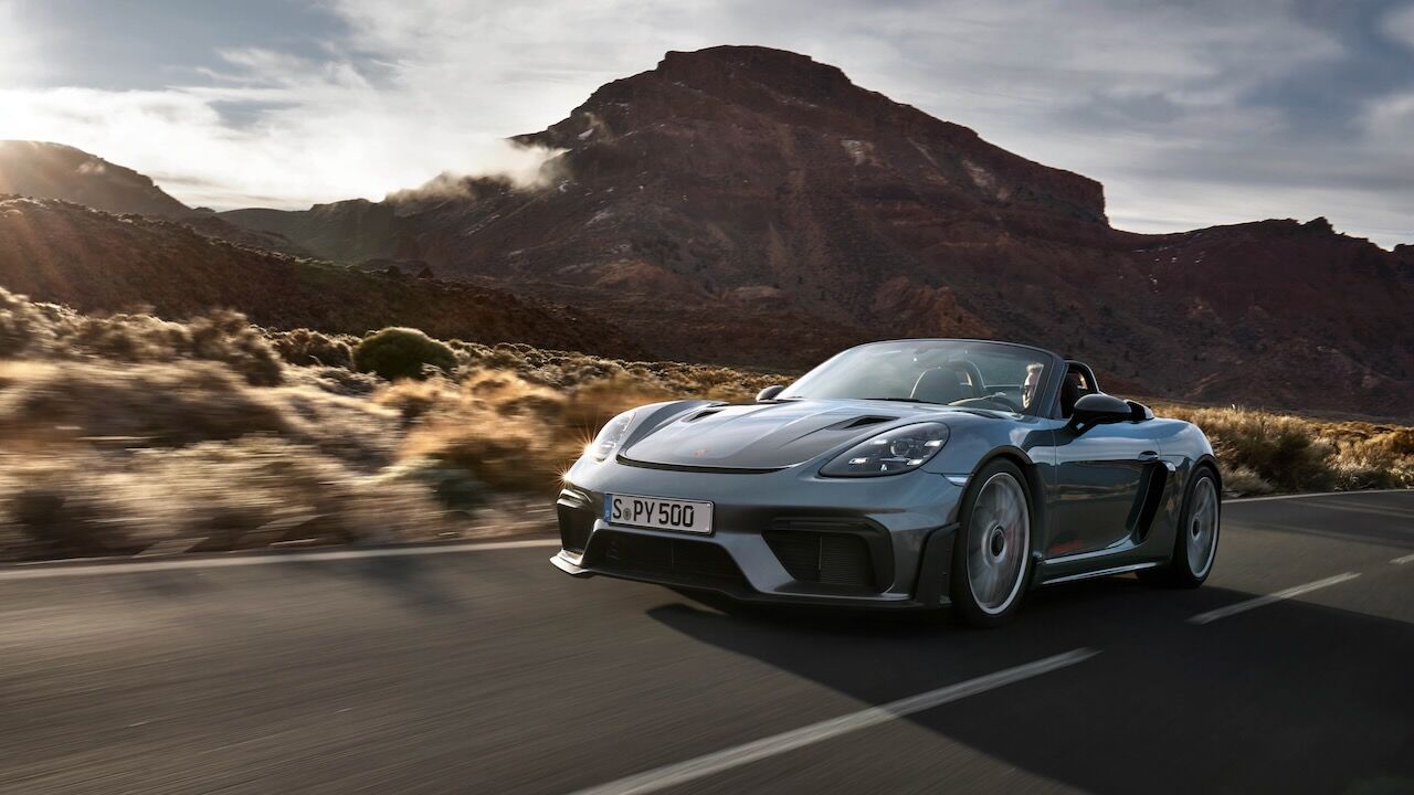 Justo tres décadas después de la presentación del primer prototipo del Boxster, su versión tope de gama monta en posición central el motor del Porsche 911 GT3. Ese seis cilindros bóxer atmosférico de 4.0 litros es una especie en extinción capaz de alcanzar cifras que sorprenden. Alcanza las 9.000 rpm mientras sus 500 CV y 450 Nm de par empujan el eje trasero. Solamente puede ir con la transmisión automática PDK, con lo que el roadster biplaza acelera de 0 a 100 km/h en 3,4 segundos o de 0 a 200 km/h en 10,9 segundos, con una velocidad máxima de 308 km/h.