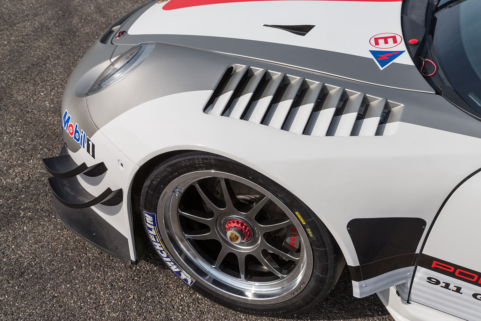 La suspensión también ha experimentado cambios. Las vías tanto del eje delantero como del posterior han crecido 50 milímetros. La anchura de las llantas delanteras es ahora de doce pulgadas en lugar de las 10,9 que tenían antes. La distancia entre ejes del último 911 GT3 R aumenta en diez milímetros.