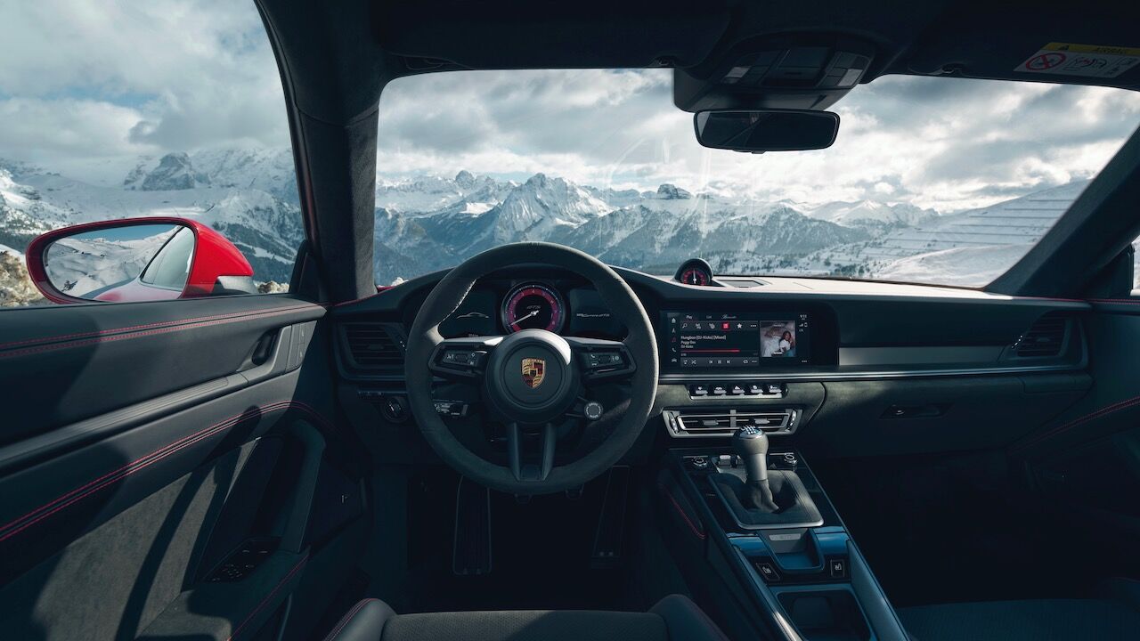 En el interior de los modelos GTS también se gana en elegancia gracias a un buen número de elementos tapizados en Race-Tex. Este material de microfibra está presente en la parte central de los asientos, el volante, los tiradores de las puertas o la palanca de cambios, que además se ha acortado 10 mm en los manuales. Con el pack Sport Chrono se suman los asientos Sports Seats Plus con ajuste eléctrico y la aplicación Porsche Track Precision. También hay un pack Interior GTS con costuras decorativas en contraste y otras inserciones en color Carbono mate.