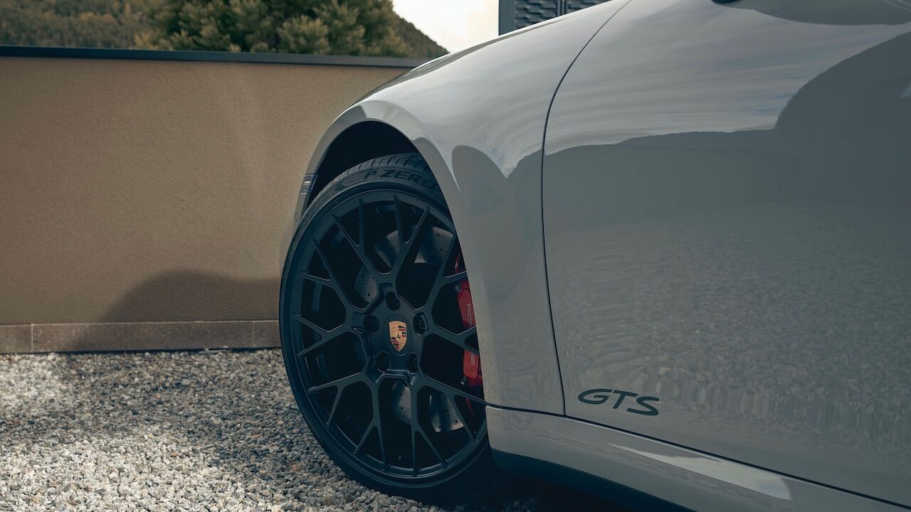 Los Porsche 911 GTS se distinguen a nivel estético del resto de variantes por un buen número de detalles en negros u oscurecidos. Se incluyen el splitter delantero, las llantas con tuerca central que vienen del 911 Turbo (20 pulgadas delante y 21 detrás), la cubierta del motor o la inscripción GTS. De serie monta el sistema de escape deportivo para mejorar el sonido y el diseño. Opcionalmente hay disponible un pack Sport Design con molduras diferenciadas además de los faros Porsche Dynamic Light System Plus (PDLS Plus).