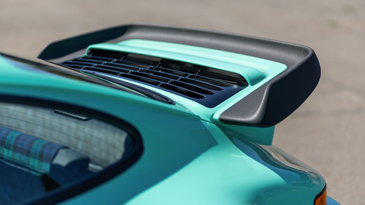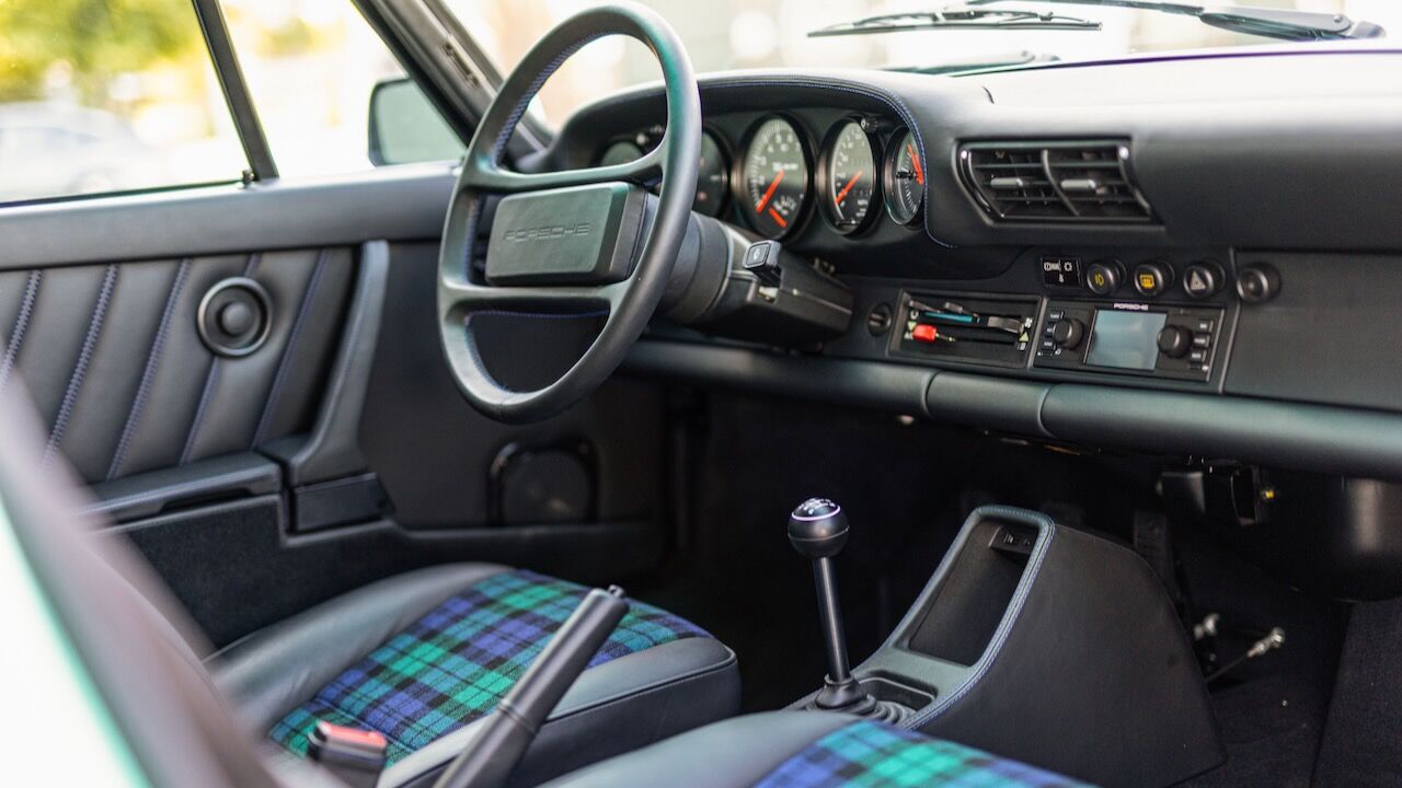Por si el contenido no fuera suficiente, el envoltorio también es espectacular. Este AP87 está terminado en un llamativo Mintgrün, un verde menta que contrasta con un interior en cuero negro y tela tartán azul y verde, evocando una mezcla entre tradición alemana y atrevimiento británico. Para rematar, calza llantas doradas RUF y conserva apenas 500 kilómetros desde su reconstrucción. Ha sido revisado recientemente por Lanzante, que le ha actualizado la ECU y el software. Es un coche listo para coleccionar... o para ser disfrutado en circuito con guantes ignífugos y una sonrisa imposible de borrar.