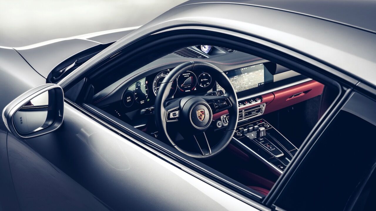 En el interior se apuesta por deportividad y lujo a partes iguales. Ya de serie cuenta con una tapicería de cuero integral, inserciones de fibra de carbono o los asientos deportivos con 18 reglajes eléctricos. El nuevo volante deportivo GT viene de serie, al igual que el paquete Sport Chrono con la app Porsche Track Precision o el sistema de sonido Bose. El infoentretenimiento viene de la mano del sistema PCM con pantalla táctil de 10,9 pulgadas.