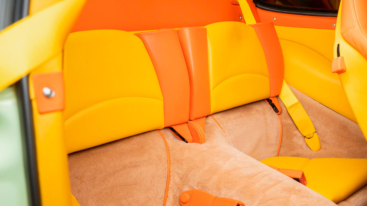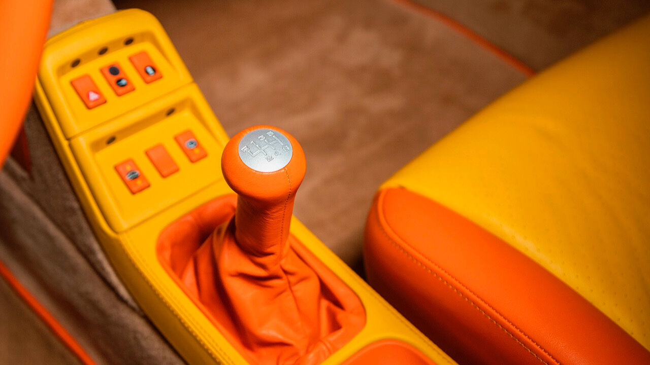 Por supuesto, se trata de una opción individual y muy inspirada en los 80, similar a lo que se ofrece en el programa Paint to Sample. Y aunque el exterior llame la atención, lo que se lleva todas las miradas sin duda es su interior. Aquí se combinan los tonos amarillos y naranjas en la tapicería de cuero que recubre asientos, salpicadero, volante, puertas o consola central. De hecho, incluso los relojes de la instrumentación van en estos colores, al igual que el resto de botones o los altavoces del sistema de sonido.