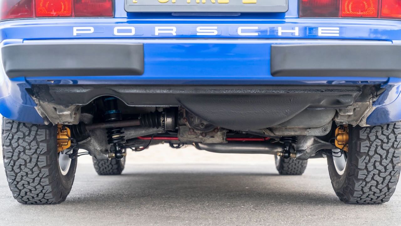 Para crear este Porsche 944 Safari se eliminó la suspensión original, reemplazándola por una más elevada totalmente ajustable. Cuenta con llantas Teledial blancas de 15 pulgadas con neumáticos BFGoodrich K02 Baja Champion. Y se ha instalado una baca tipo cesta, con una rueda de repuesto a juego. La mecánica 2.5 de cuatro cilindros envía la potencia a las ruedas traseras, no hay modificación.