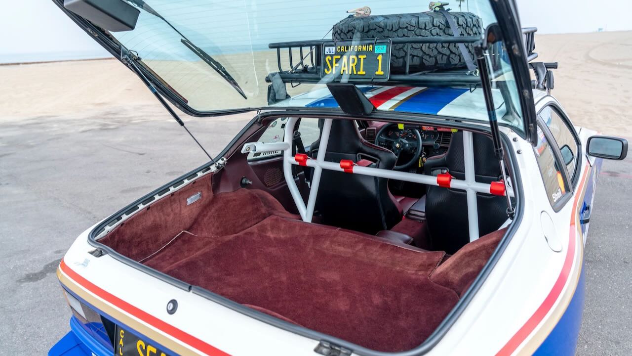 No podía estar pintado de otro modo que con la librea de Rothmans, a imagen del 959 Safari que triunfó en el Dakar en 1986. Suma detalles como la barra de luces en en el parachoques delantero, con cuatro focos de rally Hella 4000m o el cabrestante en la defensa delantera para las situaciones difíciles. En el interior, en color burdeos, cuenta con asientos Braum Racing Elite X burdeos y arneses Sabelt rojos. Y un salpicadero de Alcantara.