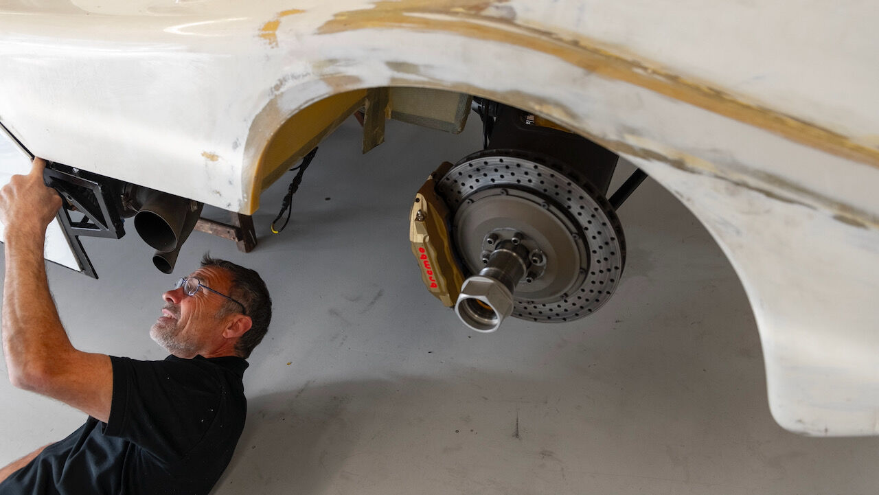 Precisamente fue uno de los retos durante la restauración. Tras varias décadas ha habido muchos recambios que no han podido encontrar y que han tenido que reconstruir por completo. Incluso se tomaron la licencia de cambiar la disposición de los radiadores y hacer muchos otros ajustes en la carrocería. El resultado es que el Porsche 962 C vuelve a su plenitud y ha podido rodar sin problemas en el circuito de Weissach. Stuck sigue destacando la mejora respecto al 956 por su batalla 120 mm mayor y los pedales montados detrás del eje delantero.