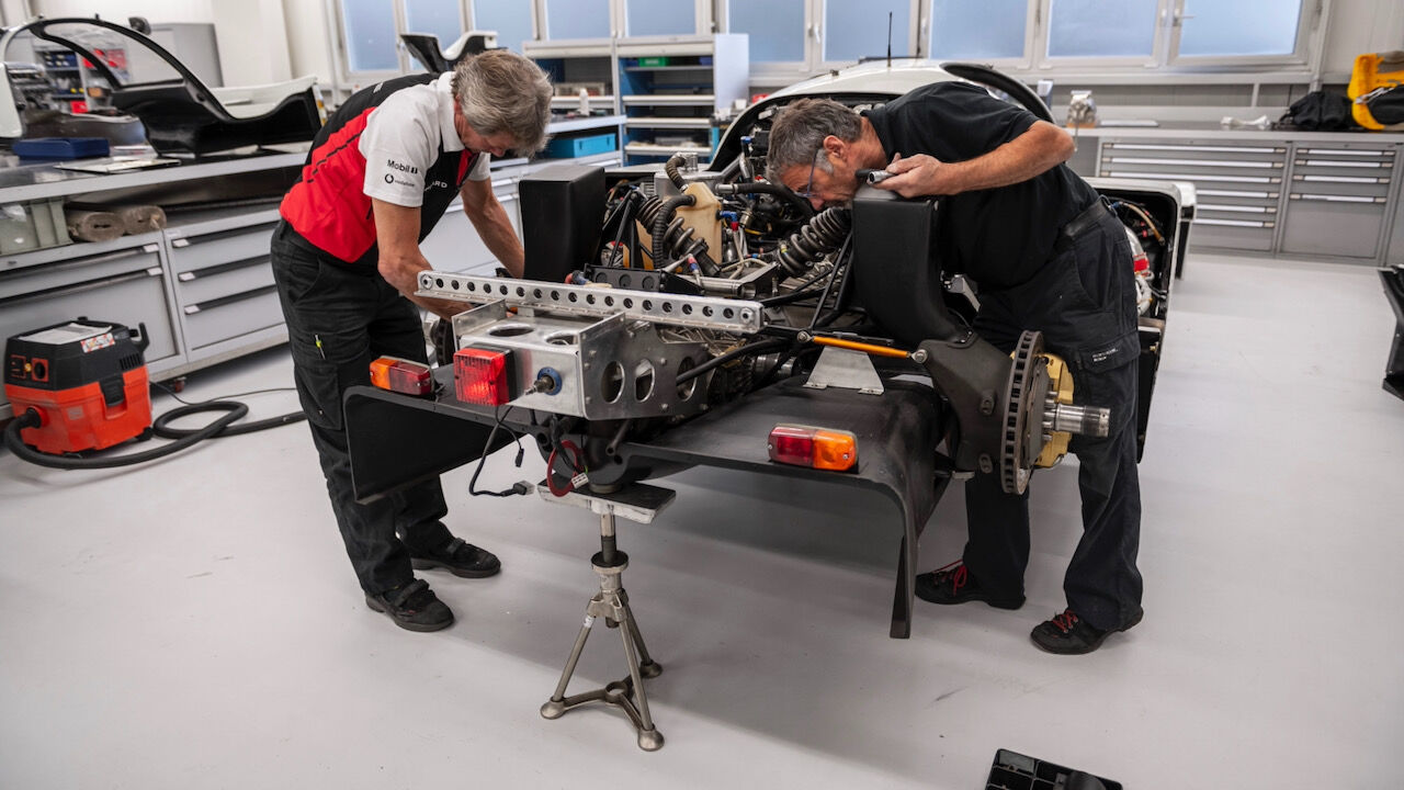 Durante la restauración se ha contado con la presencia de Hans-Joachim Stuck, uno de los pilotos que más conoce a este Porsche 962 C. Se encontró con su ingeniero de carreras de la época, Norbert Singer, y con el diseñador Rob Powell, quien fuera responsable la librea roja, amarilla y negra. Esos colores estuvieron en el Supercup ADAC Würth alemana cuando entró Shell como patrocinador, aunque en Le Mans vistieron de Rothmans. Una gran innovación de este modelo fue la transmisión de doble embrague PDK, que fue testada bajo las condiciones más exigentes.