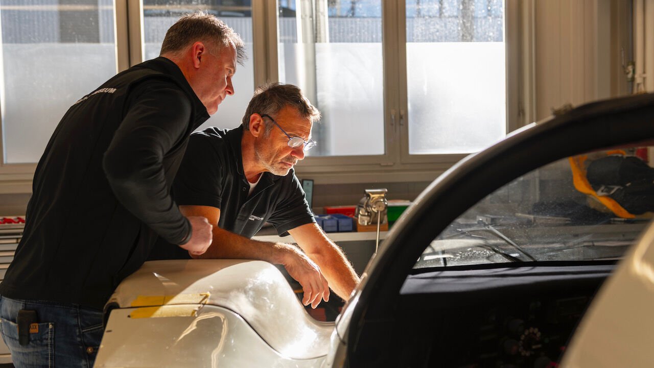 Se trata del 962 C con el que Al Holbert, Derek Bell y Hans-Joachim Stuck vencieron en Le Mans en 1987. Curiosamente, ese trío venía de haber ganado también el año anterior, en el que se impusieron al otro 962 C pilotado por Oscar Larrauri, Joël Gouhier y el español Jesús Pareja. Este ejemplar pertenece desde entonces al departamento de Patrimonio y del Museo Porsche, que decidieron devolverlo a su condición original. Les ha llevado nada menos que año y medio, dejando un resultado espectacular.