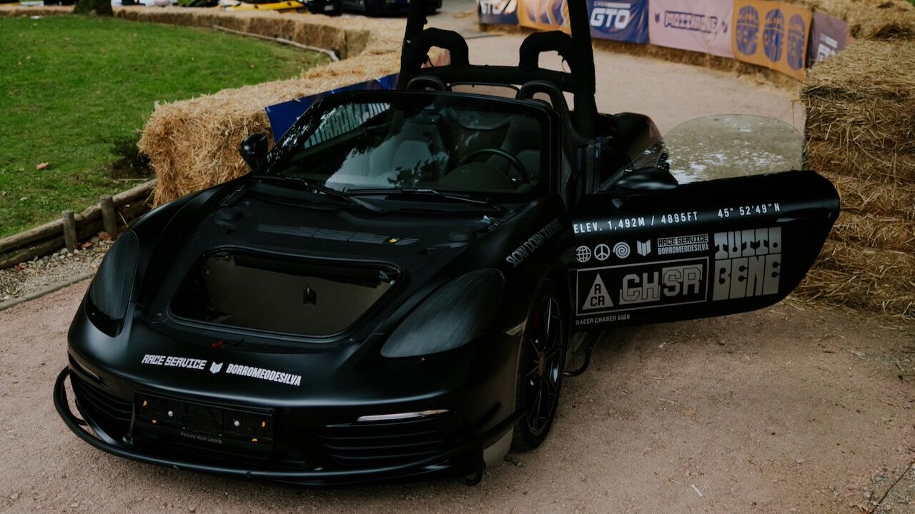En 2017 cogieron un Porsche 718 Boxster S y se propusieron algo muy concreto: convertirlo en un coche cámara para dar cobertura a las actividades que se realizan en el Porsche Experience Center. El descapotable suponía la base ideal, ya que su ligereza y sus prestaciones le permitían mantener el ritmo en circuito. La versión con el motor de cuatro cilindros y 2.5 litros tiene 350 CV y va ligada a la transmisión automática PDK. Por supuesto, es un coche de propulsión y la mecánica va situada en posición trasera, algo que va a condicionar su transformación.