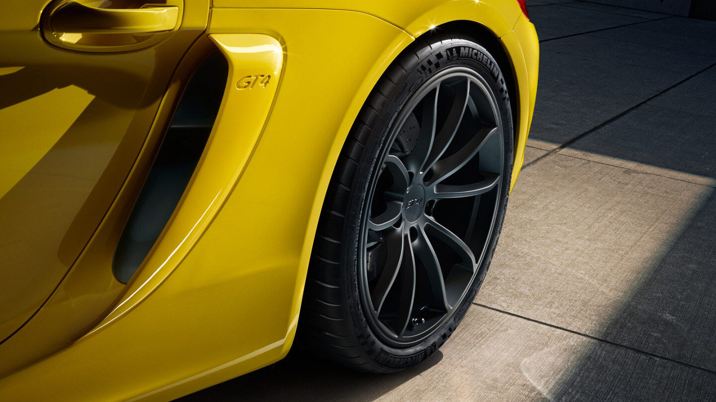 Uno de los grandes protagonistas dinámicos del Porsche Caymen GT4 es su sistema de amortiguación activo y variable Porsche Active Suspension Management (PASM). Este dispositivo ajusta de forma activa y continua la dureza de la amortiguación en cada rueda, en función de las condiciones y del tipo de conducción. Se ofrecen dos modos de funcionamiento: normal y deportivo (Sport). No falta el sistema Porsche Torque Vectoring (PTV) con bloqueo transversal del eje trasero ni un potente juego de frenos, que se puede mejorar con los frenos opcionales Porsche Ceramic Composite Brake (PCCB) con unos discos de 410 mm delante y 390 mm detrás.
