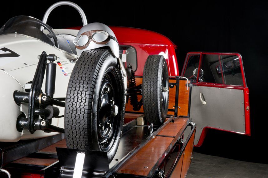 Aunque lo realmente interesante debe ser moverte con ese pequeño monoplaza en un circuito, porque cuenta con el FIA HTP (el pase de históricos que le permite correr en competiciones oficiales. Además, cada vez más organizadores de eventos quieren transportadores de época con sus coches de carreras de época. ¿Qué evento de coches clásicos no invitaría a esta peculiar pareja?