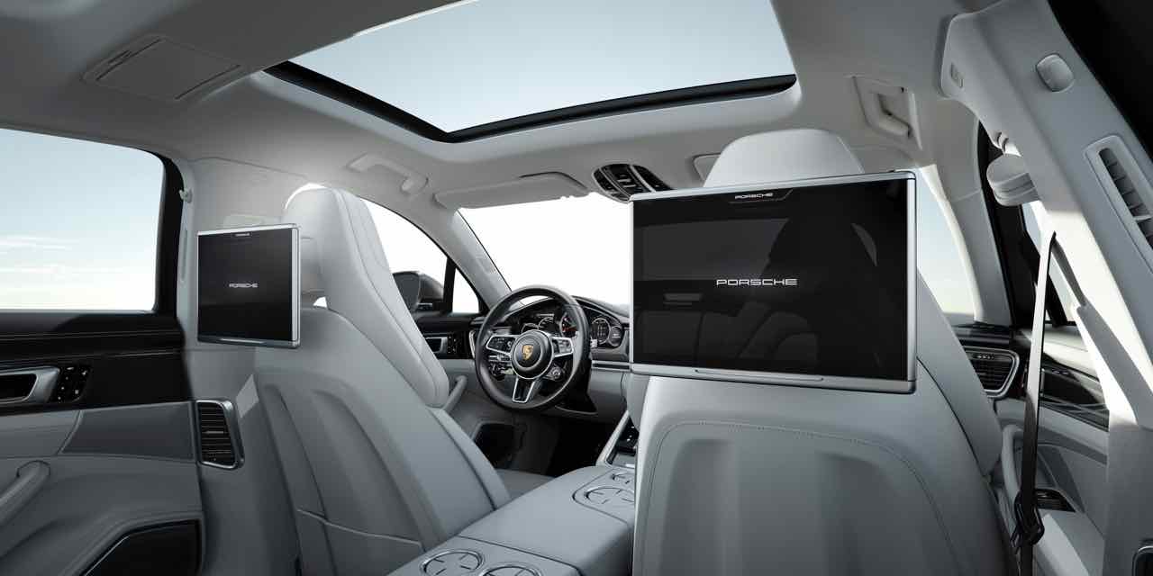 El Porsche Panamera Executive, al contar con un mayor espacio en las plazas traseras, permite que tenga una mayor consola central y cuente además con unas mesas plegables y el Rear Seat Entertaiment, un juego de tablets de 10,1 pulgadas que hacen de pantallas para los ocupantes traseros, que pueden desmontarse para usarse fuera del coche.
