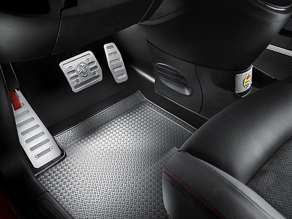 La misma fuerte personalización encontramos en el interior, empezando por los asientos “Abarth Corsa by Sabelt” en piel y Alcántara, con carcasa y base del cojín de carbono. El volante de tres radios en cuero, es de base plana para asegurar una mejor habitabilidad con empuñaduras con aplicación en piel roja, en combinación con los asientos, y línea tricolor. Destaca el panel de instrumentos del Abarth 695 Tributo Ferrari que se caracteriza por los relojes realizados específicamente con la marca Jaeger que, inspirándose en la casa de Maranello, propone un cuadro de instrumentos con fondo blanco combinado con el manómetro de la presión del turbo separado y analógico.