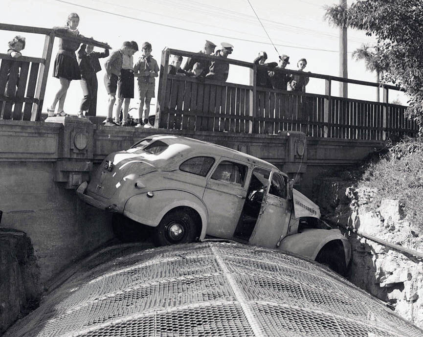 1923: En 1910 el estado de Nueva York prohibió conducir bajo los efectos de alcohol. Años después, en 1938, el límite de alcohol en sangre se fijó en un 0,15%. En la foto, la policía saca del agua el vehículo de McLennan, que logró sobrevivir a diferencia de los otros dos ocupantes. La agentes aseguraron que cuando asistieron a McLennan este desprendía un fuerte olor a alcohol. Fue acusado de homicidio involuntario y finalmente absuelto. McLenna falleció el 7 de julio de 1927 a consecuencia de las heridas sufridas en otro accidente de tráfico.