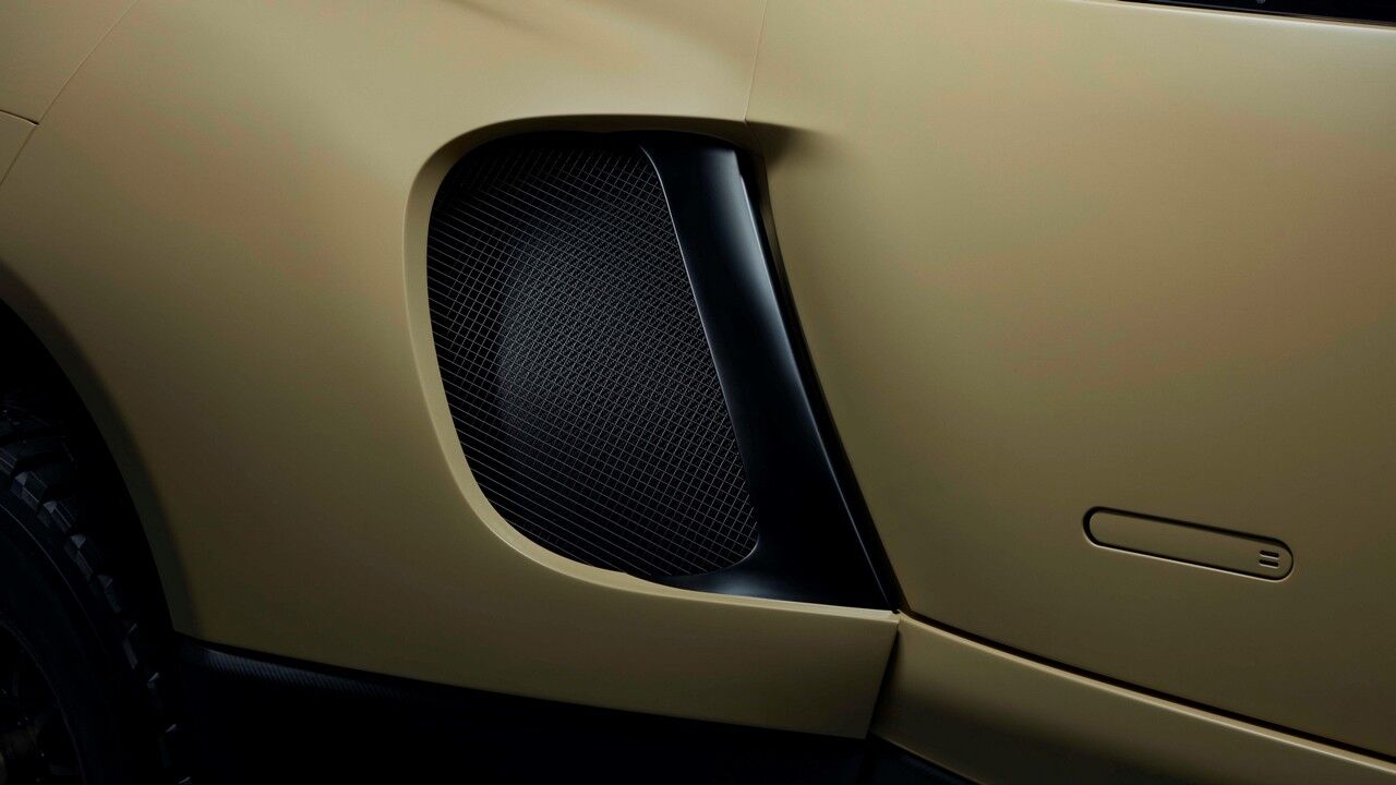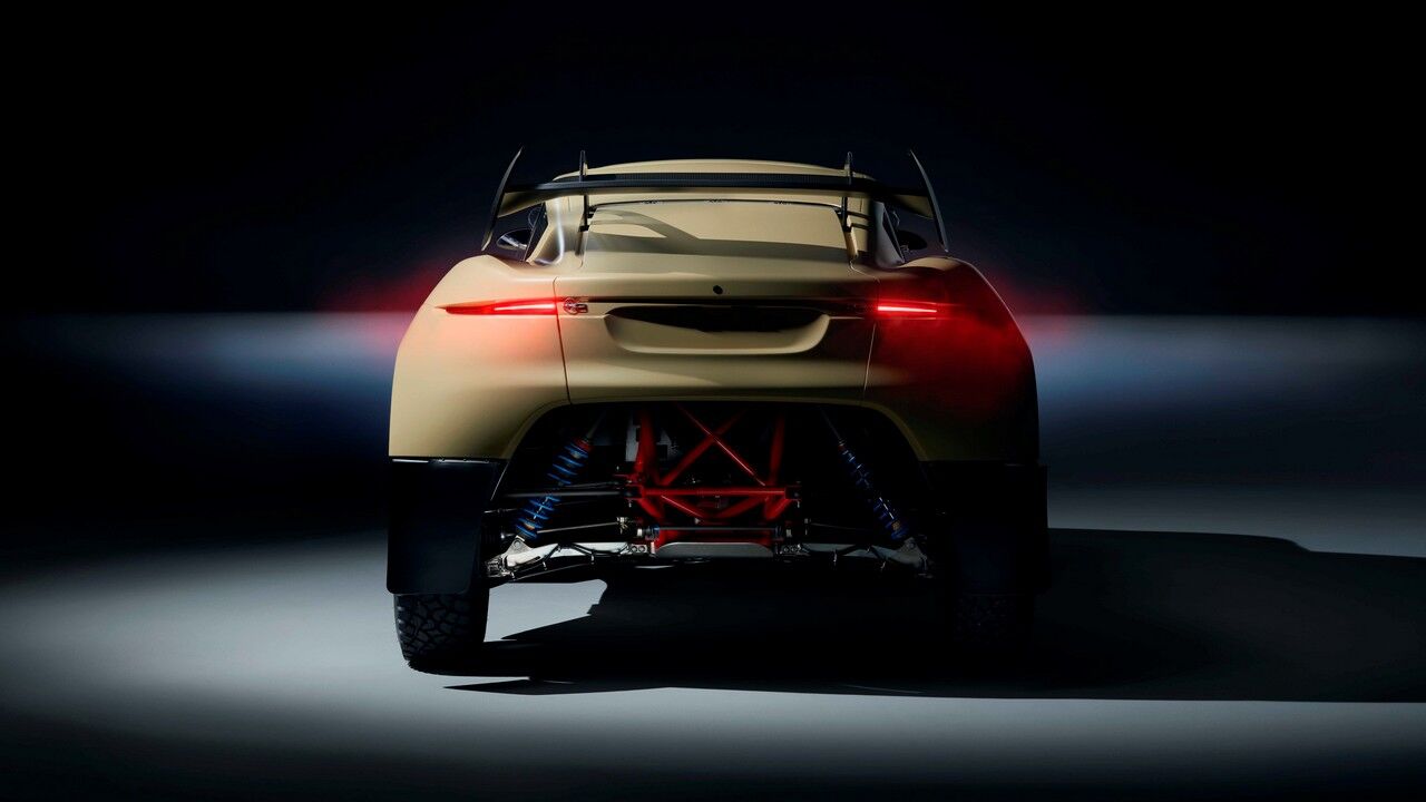 Para reducir la velocidad lo más rápido posible, el Hunter está equipado con pinzas de freno de carrera de seis pistones y discos ventilados. No se menciona el peso, pero con una carrocería fabricada con un compuesto de fibra de carbono, suponemos que este destructor del desierto es un peso ligero. Ciertamente, más allá de las entrañas mecánicas, el resto del vehículo se ha creado para reducir el peso en la mayor medida de lo posible. A eso ayuda el suave diseño de Ian Callum, con líneas fluidas que se alejan del clásico y burdo todoterreno.