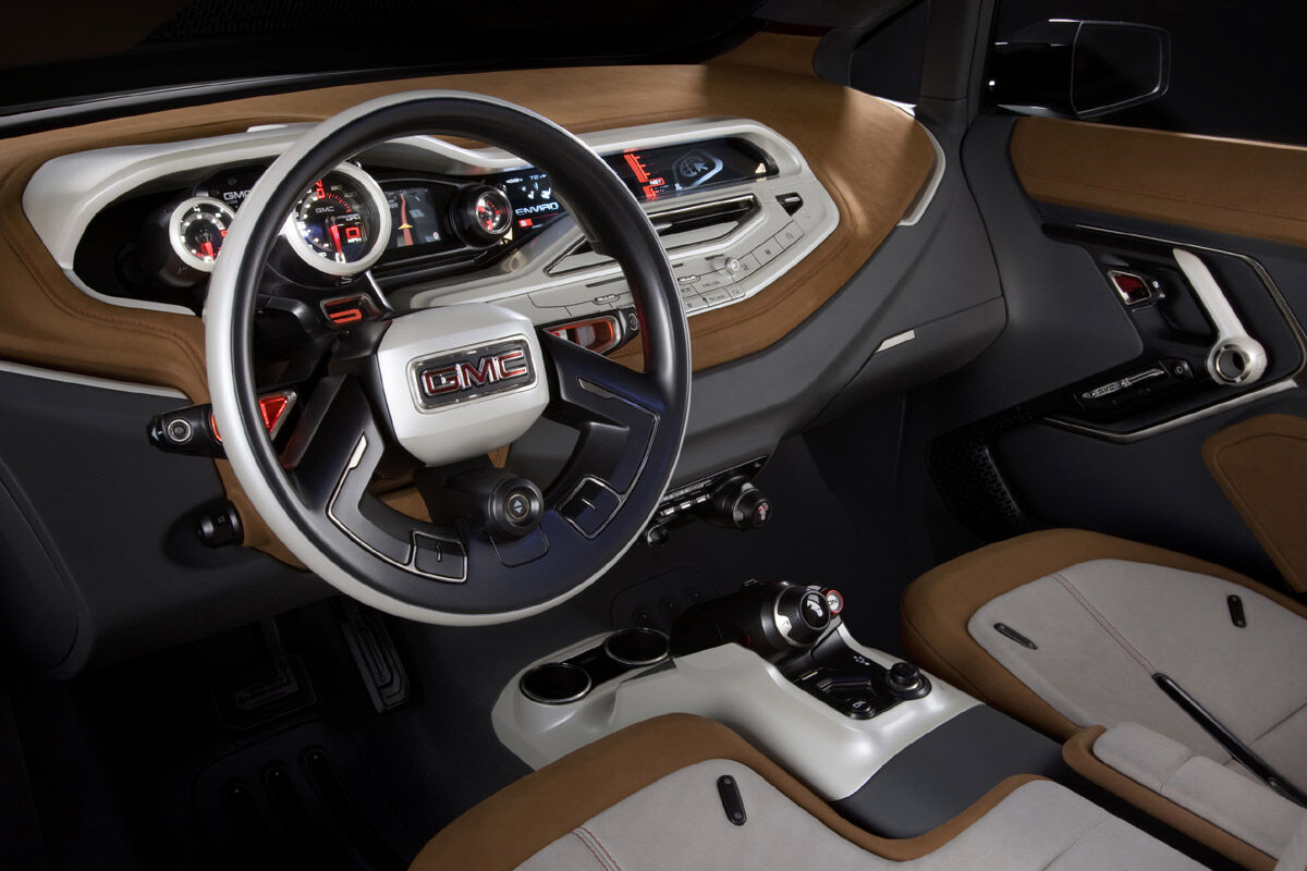 Por dentro, GMC comenta que se ha inspirado en instrumentos mecánicos y herramientas de precisión que se usan en el ámbito de la aeronáutica. Prueba de ello son los indicadores del panel de instrumentos, estos imitan a las piezas de relojería de los aviones.