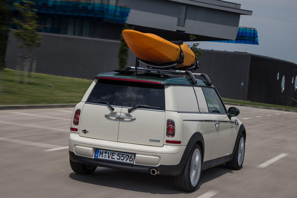 El Mini Clubvan de serie es una adaptación del Clubman destinado a un uso profesional en el que anula las plazas traseras para extender el maletero y lo separa del habitáculo con una malla metálica.