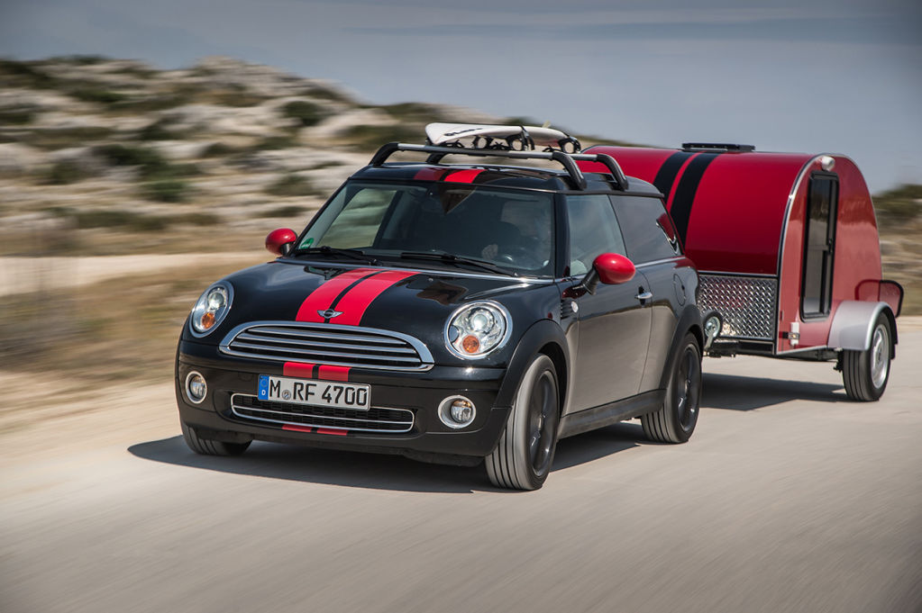 La caravana Mini Cowley pesa menos de 300 kilogramos y es tan solo 12 centímetros más ancha que un Mini Clubman, por lo que cualquier Mini no debería tener problemas para poder remolcarlo.