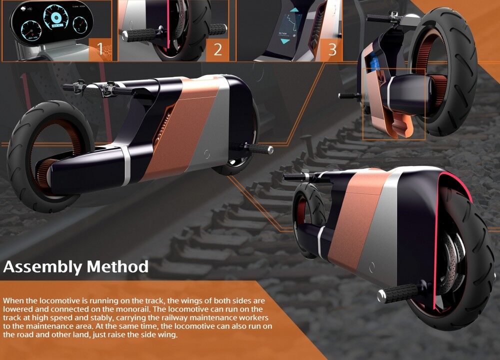 Vale. Ya hemos visto motos atravesando bosques, en cimas negras, saltando sobre barrancos e incluso cayendo de aviones. ¿Conoces el único lugar donde no hemos visto una moto? Véase, por ejemplo, en unas vías de tren. Eso es precisamente lo que la idea de hoy expresa y resume en el pequeño diseño visual que tenemos aquí. Lo que hoy exploraremos es el resultado de un grupo de estudiantes que se reunieron y pensaron en otra forma de transporte, limpia y sin la necesidad de tener que realizar una ingente inversión monetaria (de primeras).