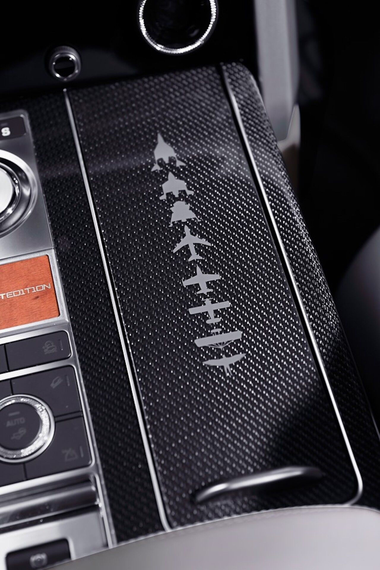 En el interior presenta un componente inédito en la zona de los portavasos, que ha sido realizada de forma artesanal utilizando una pieza del tren de aterrizaje de la nave de Virgen que hizo el primer vuelo espacial en diciembre del pasado año. Por si fuera poco, cuando el usuario vuelva de ese viaje al espacio podrá poner en su Range Rover Astronaut Edition una pieza de madera de la nave. También destaca el gráfico de un cohete despegando (DNA of Flight) en varias zonas de la tapicería de cuero o en la moldura de fibra de carbono.