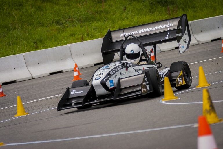 En cuanto a la motorización, se han elegido cuatro motores eléctricos, de 50 cv cada uno, que suman un total de 200 cv para este formula car. Una cifra que no es espectacular, sin embargo, lo que nos deja boquiabiertos es que, tiene un par de 1630 Nm de potencia. No es de extrañar la razón por la que se quejan los diseñadores, y es que no para de hacer rueda. Según afirmaron los estudiantes, todavía tienen que implementar un buen sistema de control de tracción, pues la fuerza con la que arranca el asfalto es descomunal.