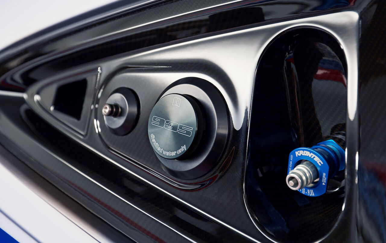 Como se puede apreciar en las imágenes, hay muchos detalles heredados directamente del «Moby Dick» original. La mayoría de la carrocería ha sido modificada con piezas de fibra de carbono (CFRP) personalizadas. Lo más llamativo es la nueva zaga que extiende su longitud hasta los 4,87 metros y su anchura hasta los 2,03 metros. Llaman la atención las salidas de aire delanteras, las llantas aerodinámicas o el alerón que recuerdan a los del 935/78.