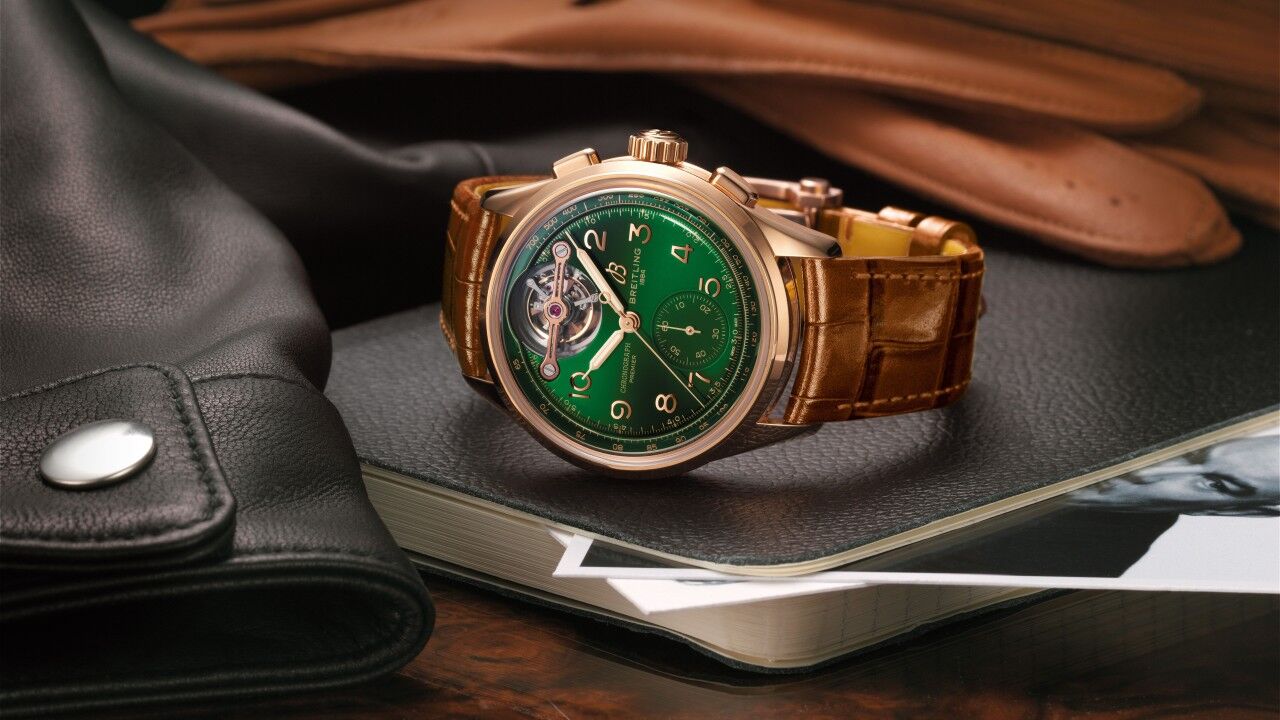 Pero lo más destacado es el calibre y la jaula de tourbillon especiales que se ven a través de la distintiva esfera verde, que recuerda al clásico Brtitish Racing Green asociado con los otros modelos dentro de la asociación entre Breitling y Bentley. Impulsado por un calibre B21, el movimiento tourbillon está certificado por el Instituto Oficial de Pruebas de Cronómetros Suizos (COSC; Contrôle Officiel Suisse des Chronomètres) y ofrece alrededor de 55 horas de energía de marcha y resistencia al agua hasta 100 metros.