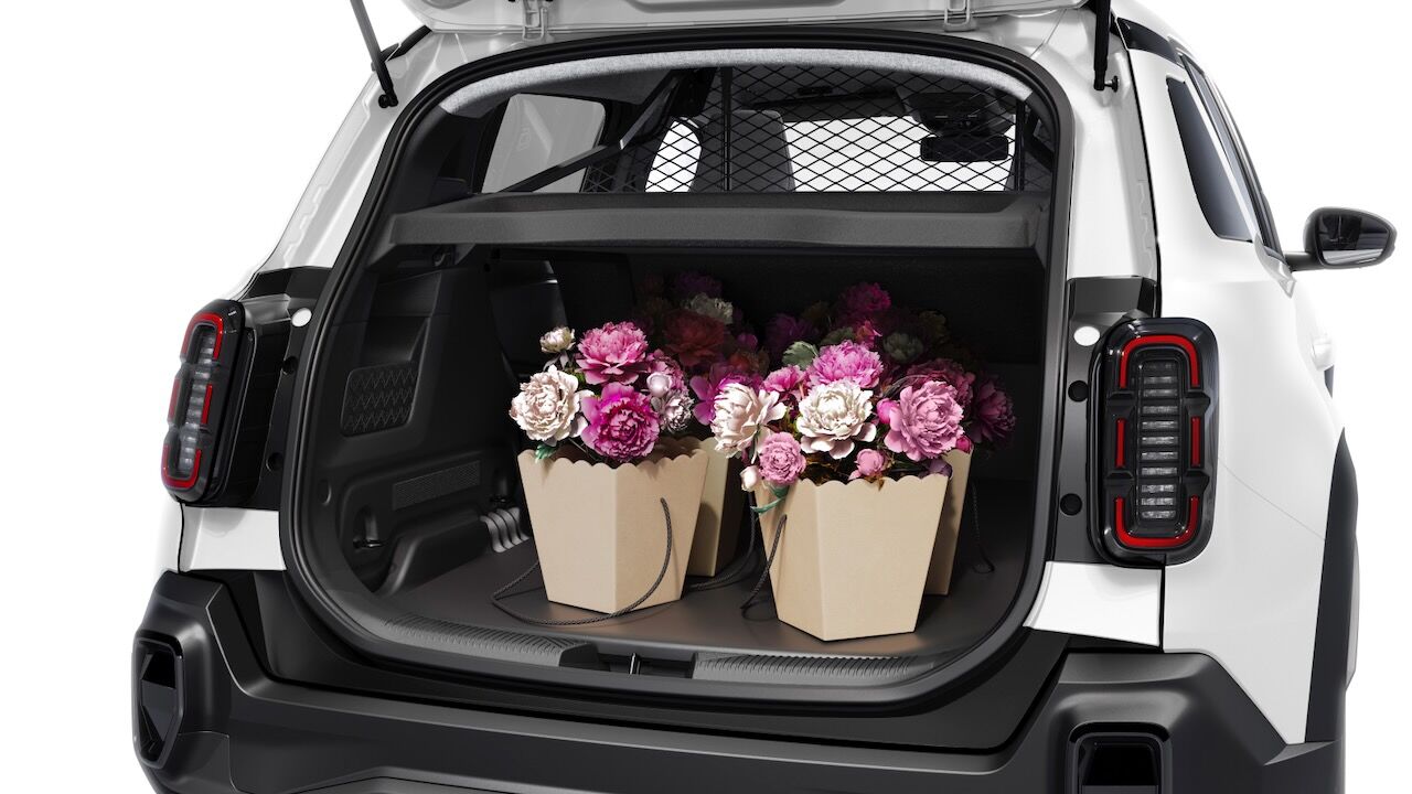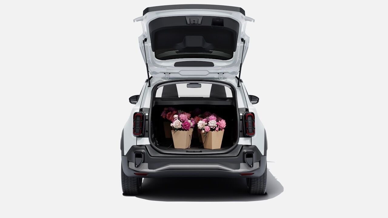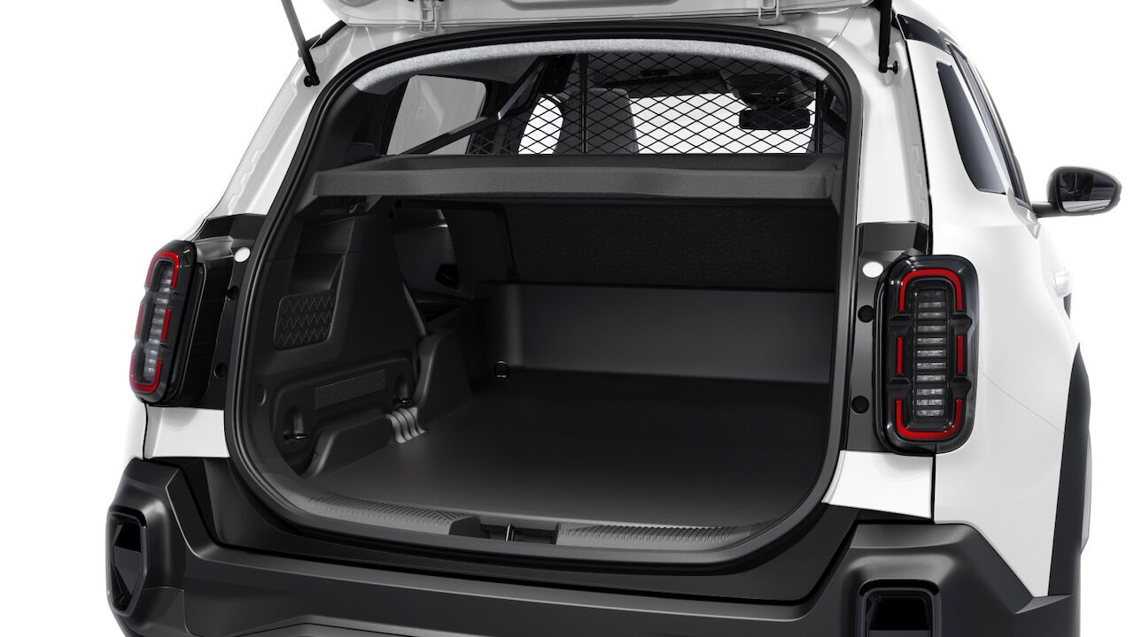 Como en otros comerciales que cumplen con esta homologación N1, el Renault 4 E-Tech Van prescinde de las plazas traseras. Por detrás de su cabina biplaza aparece un suelo reforzado con un panel de retención de carga y ganchos de sujeción, ideales para llevar cualquier tipo de carga. Eso se traduce en un espacio de carga de 1.045 litros (940 dm³), sumando otros 55 litros adicionales en un compartimento bajo el suelo. Es capaz de albergar objetos de hasta 1,20 metros y de hasta 375 kg. Opcionalmente se puede montar una rejilla para separar el habitáculo y otros detalles como una cubierta, una alfombrilla antideslizante o la función para desactivar la apertura de las ventanas y puertas traseras