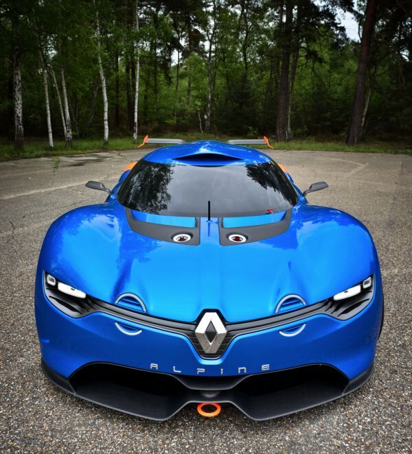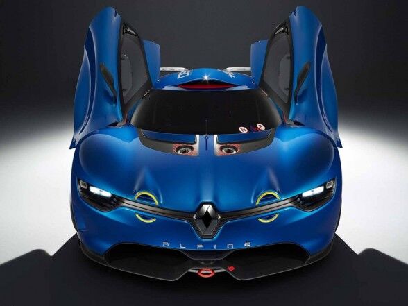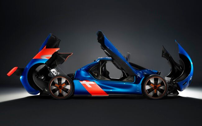 Mirando el diseño, la carrocería de este vehículo está hecha en fibra de carbono en un tono azul que supone un soplo de aire fresco y reinterpreta el original Alpine Blue. Tiene un capó abatible en la parte delantera, una tapa compartimento del motor en la parte trasera y las puertas se abren hacia arriba. También monta una iluminación completa led en amarillo y atención a una de sus señas de identidad: la ventana trasera revela el motor trasero central.