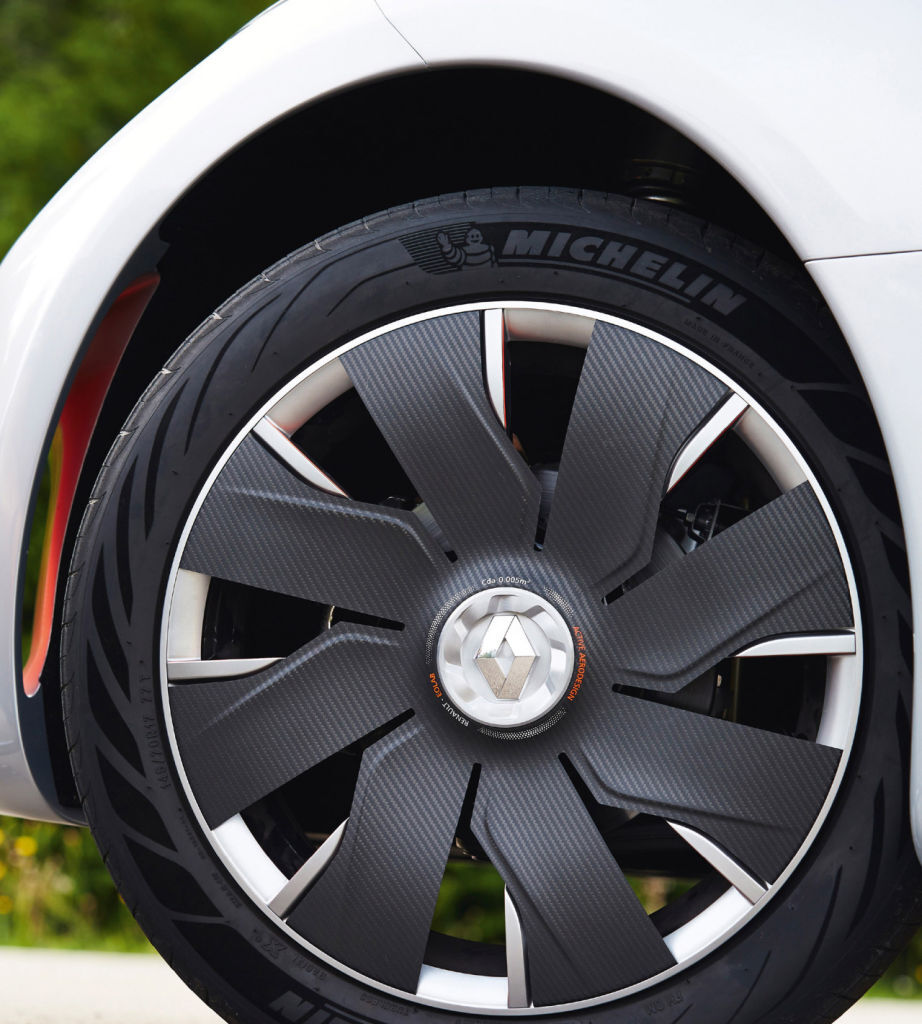 La aerodinámica es soberbia, con un coeficiente aerodinámico de 0,235 Cx lo que supone un 30% menos de resistencia que un Clio. Además de la silueta, diseñada para penetrar el aire, dispone de tres spoilers activos: uno en la parte frontal bajo el paragolpes que desciende 100 mm, y dos a los lados del paragolpes trasero, que se pliegan 500 mm. Estos spoiler se activan una vez rebasamos los 70 km/h.