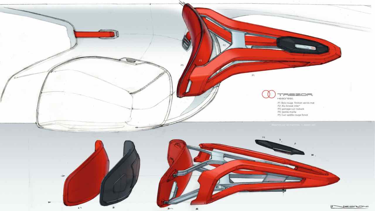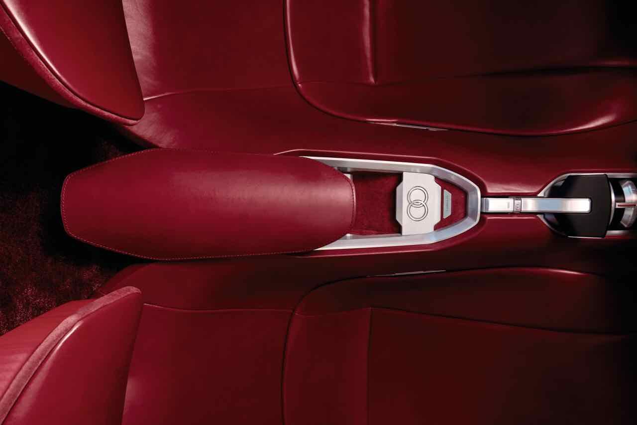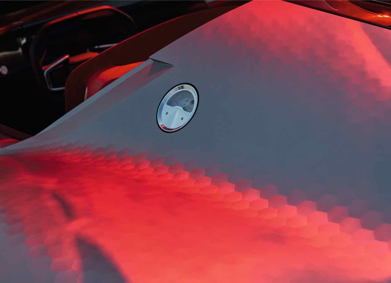 Hay también guiños clásicos, como el salpicadero de madera rojo, que incorpora los compartimientos para el equipaje en la parte delantera del vehículo. Las maletas están hechas a medida y están sujetas con correas de cuero. Además, las formas redondeadas de los asientos se inspira en el universo del mueble y están revestidos de una piel lisa de un color rojo profundo.