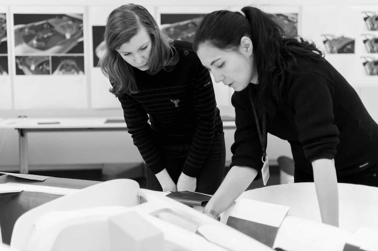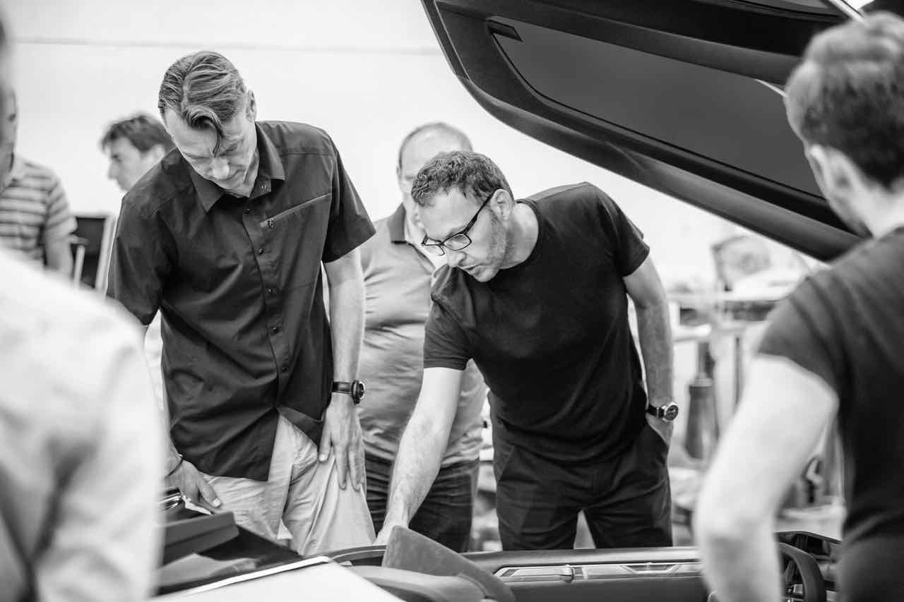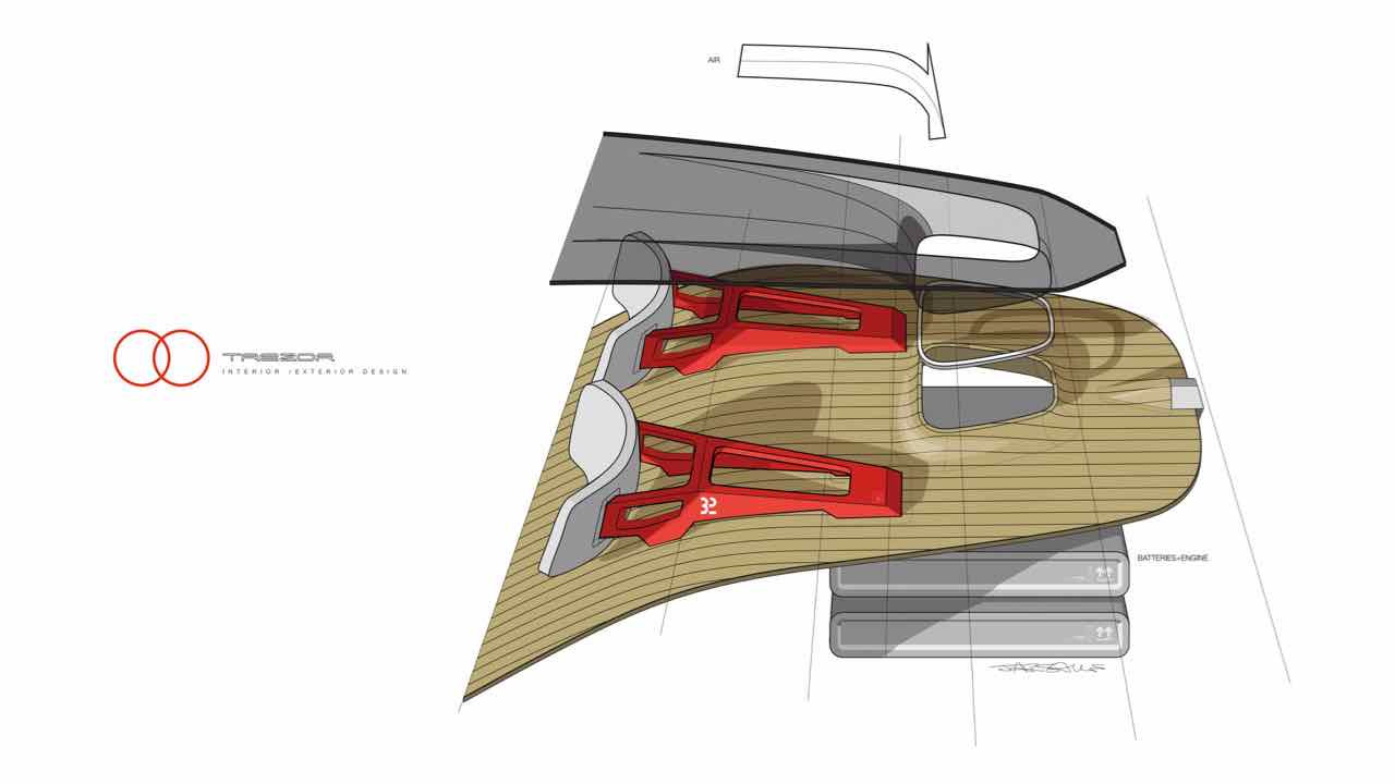 Hay también guiños clásicos, como el salpicadero de madera rojo, que incorpora los compartimientos para el equipaje en la parte delantera del vehículo. Las maletas están hechas a medida y están sujetas con correas de cuero. Además, las formas redondeadas de los asientos se inspira en el universo del mueble y están revestidos de una piel lisa de un color rojo profundo.