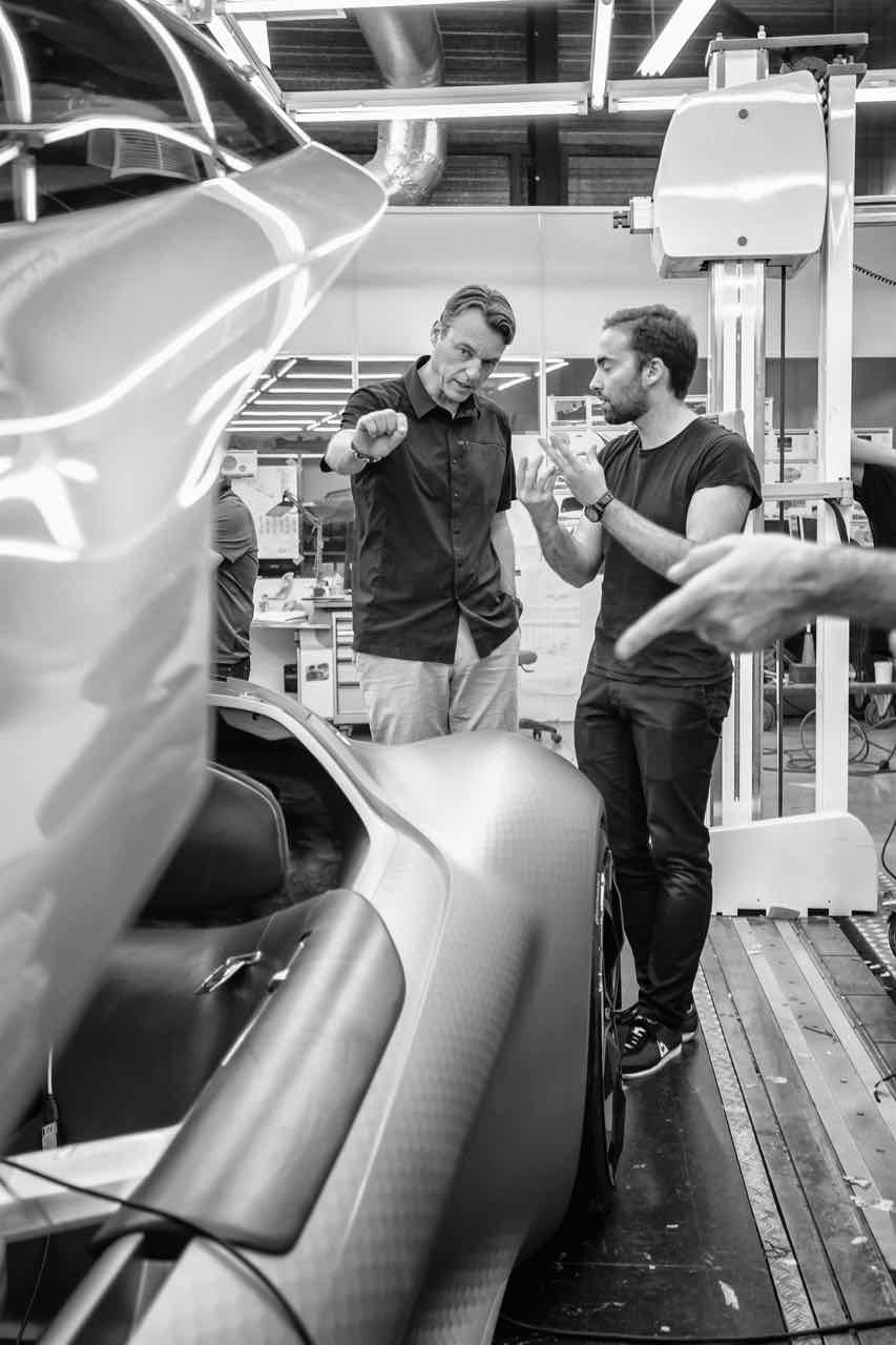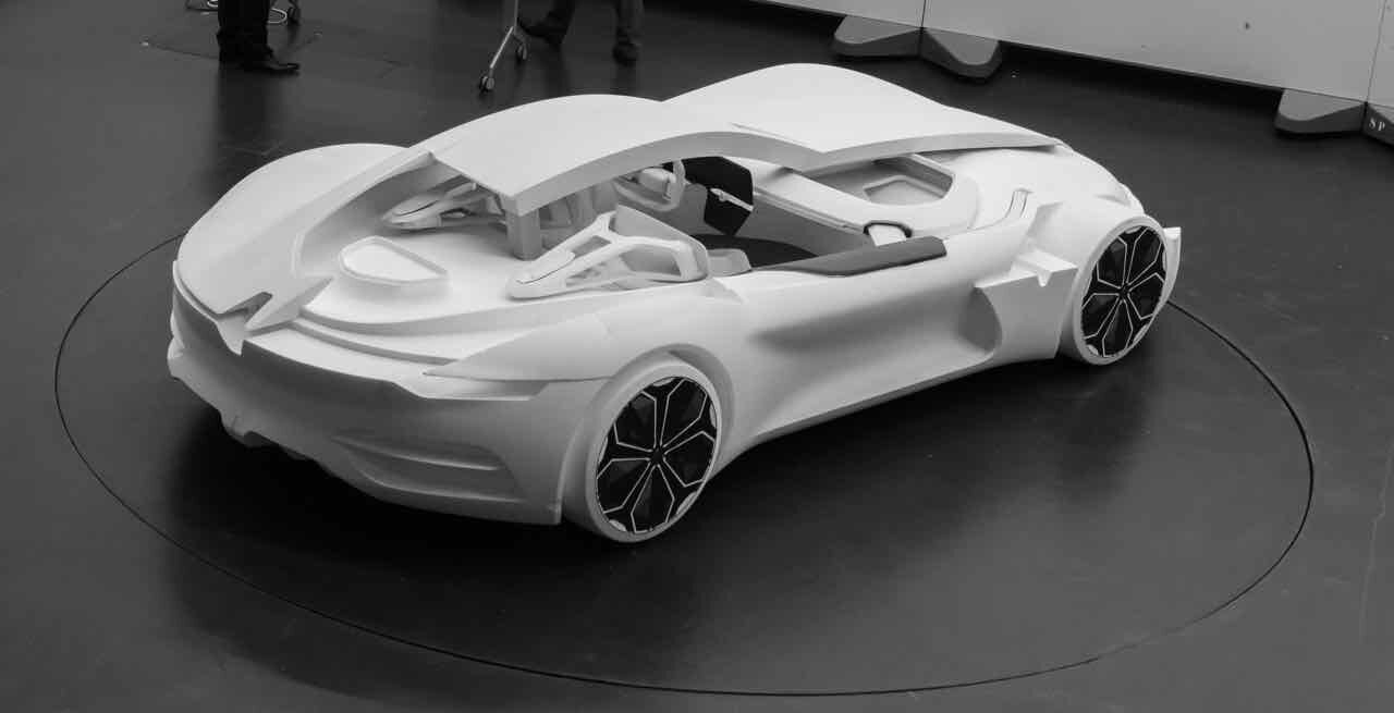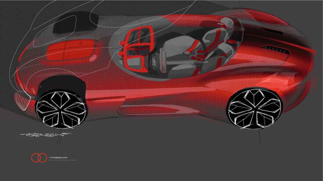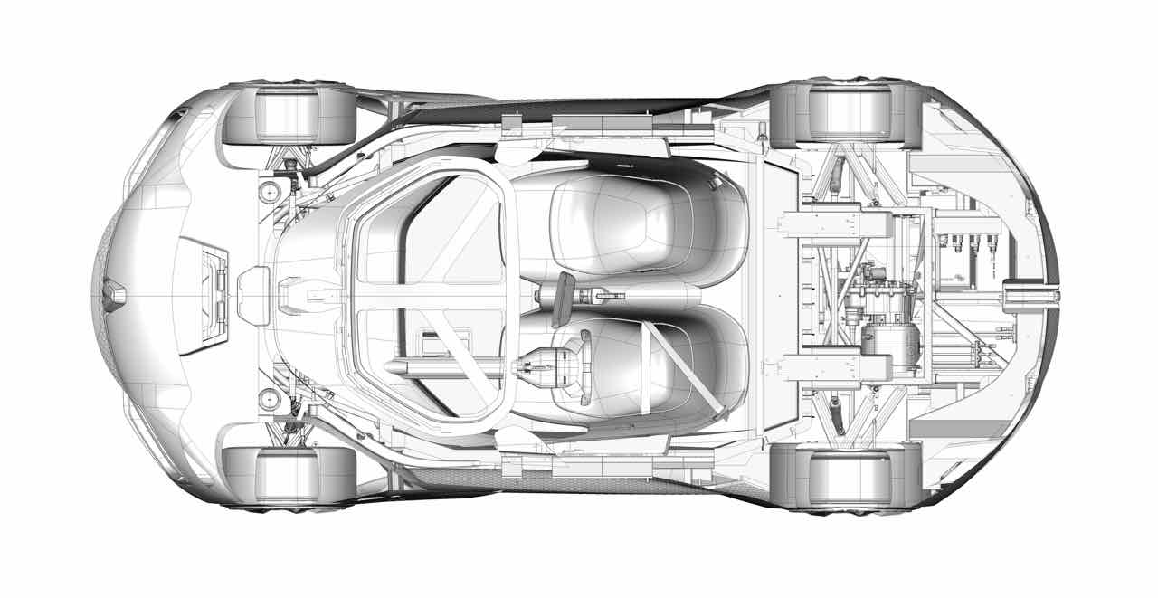 Con la forma de un gran turismo futurista de dos plazas, con un diseño elegante y curvilíneo de fibra de carbono, en el que destacan los cristales de color rojo que proporcionan un toque de contraste. Destacan paneles hexagonales y una trasera con una iluminación variable por fibra óptica. Mide 4.700 mm de longitud, por 2.180 mm de ancho y apenas 1.080 mm de altura. Gracia a ello es muy estable (el centro de gravedad se sitúa muy abajo) y tiene un coeficiente aerodinámico mu bajo, de apemas 0,22 Cx. Las llantas, de 21 pulgadas delante y 22 detrás, ponen el toque extravagante.