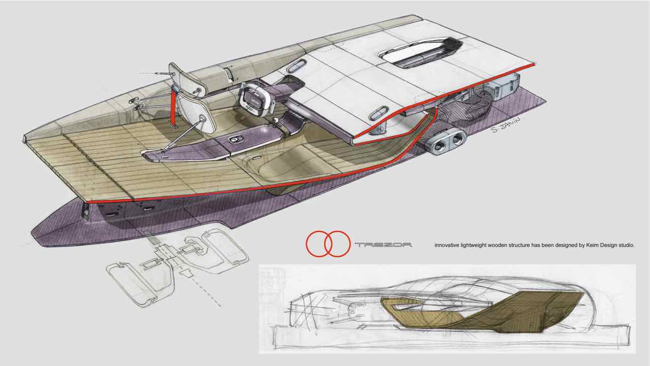 Otro punto a destacar del Renault Trezor es su ligereza. Tiene un chasis compuesto por una célula central de carbono y unidades delantera y trasera de acero tubular. La carrocería se ha realizado en carbono, por lo que apenas marca en la báscula 1.600 kg. No está nada mal, si tenemos en cuenta que es un coche bastante grande... y que cuenta con un sistema de propulsión eléctrica.