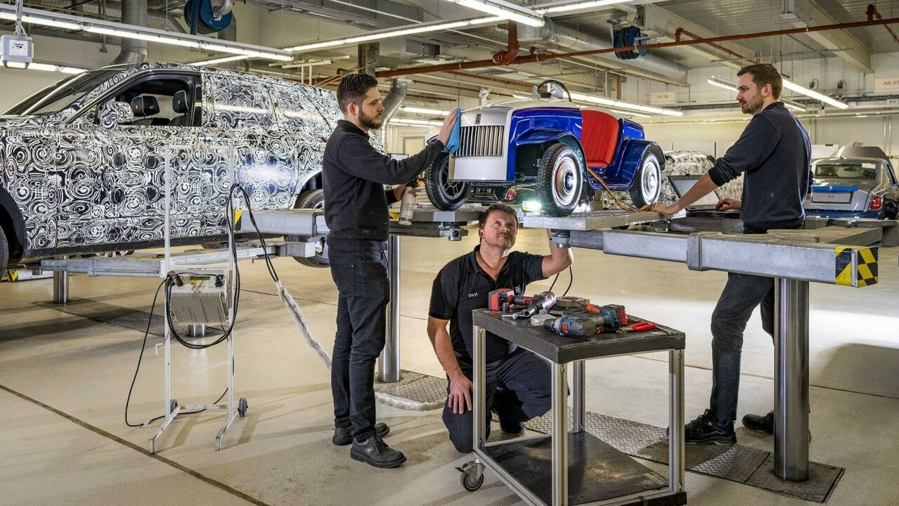 Por tanto, el SRH fue llamado a la sede de Rolls-Royce en Crewe para su primera revisión –la de los 100.000 metros– llevada a cabo con cariño por los especialistas del Bespoke Team y otros departamentos técnicos y artesanales, para restaurarlo a su estado original. El coche se fabricó en 2017, cuando el hospital le preguntó a la casa de la doble erre si podía reparar el transporte original del teatro, un Jeep eléctrico de plástico, que había sucumbido después de sufrir demasiadas aventuras traumáticas.