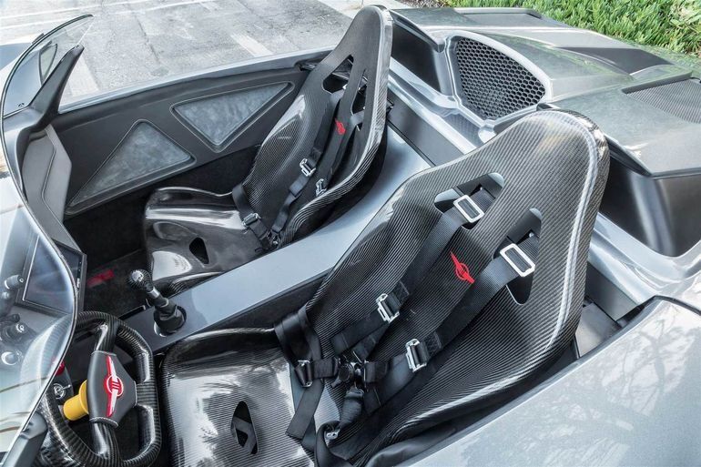El interior del coche sigue la estela del pesaje ligero donde cada elemento está fabricado con fibra de carbono. El volante por ejemplo pesa tan solo 300 gramos, igual que uno de los que emplean en Formula 1.