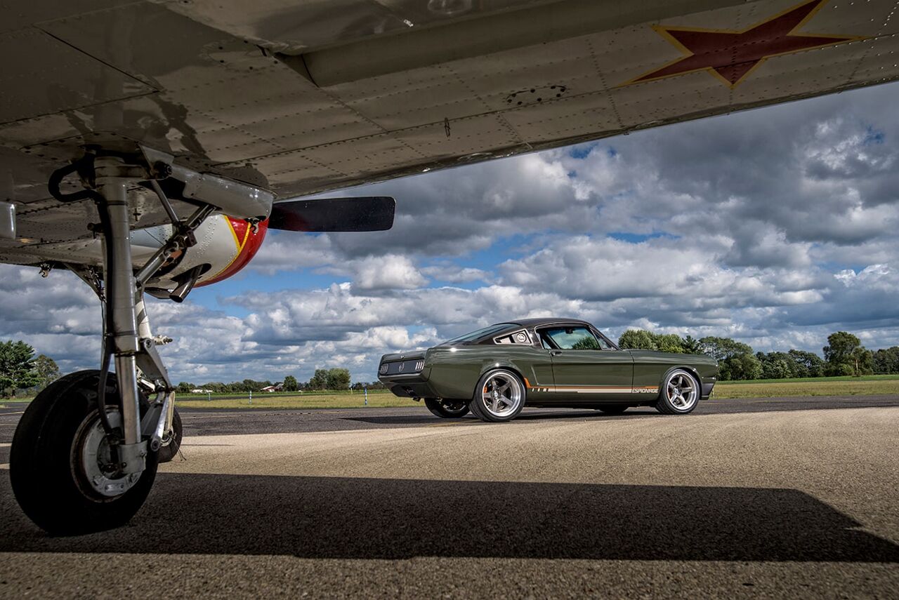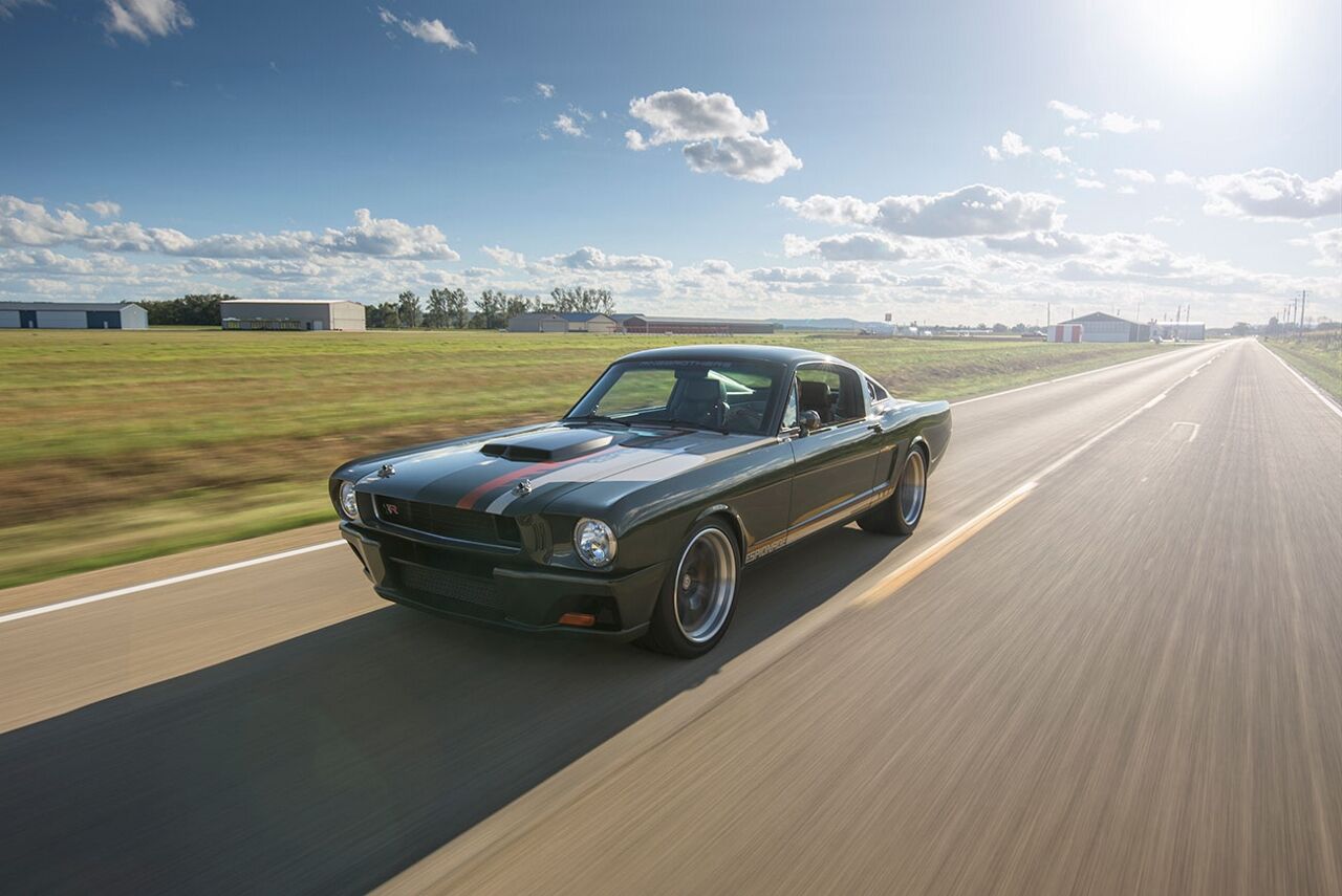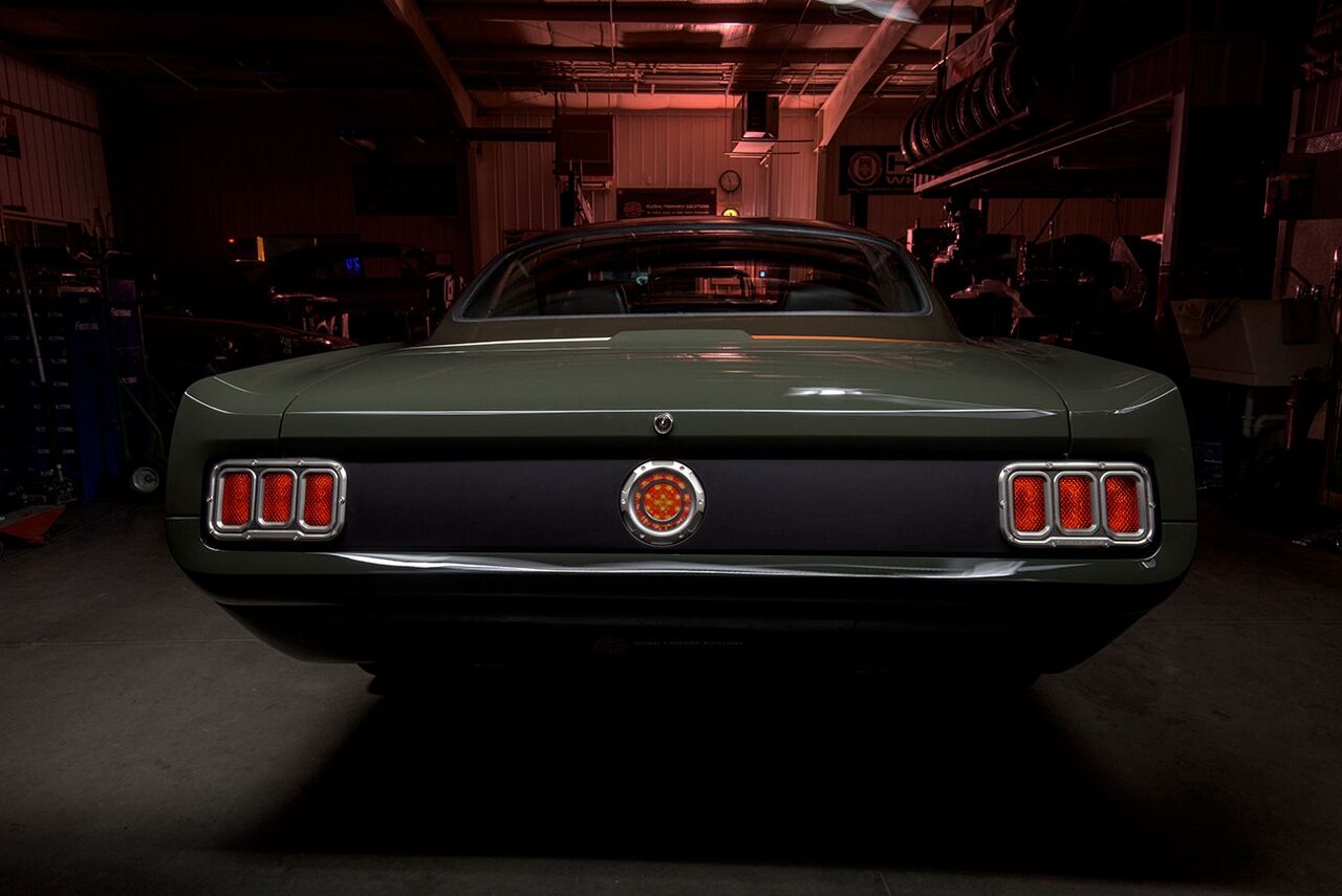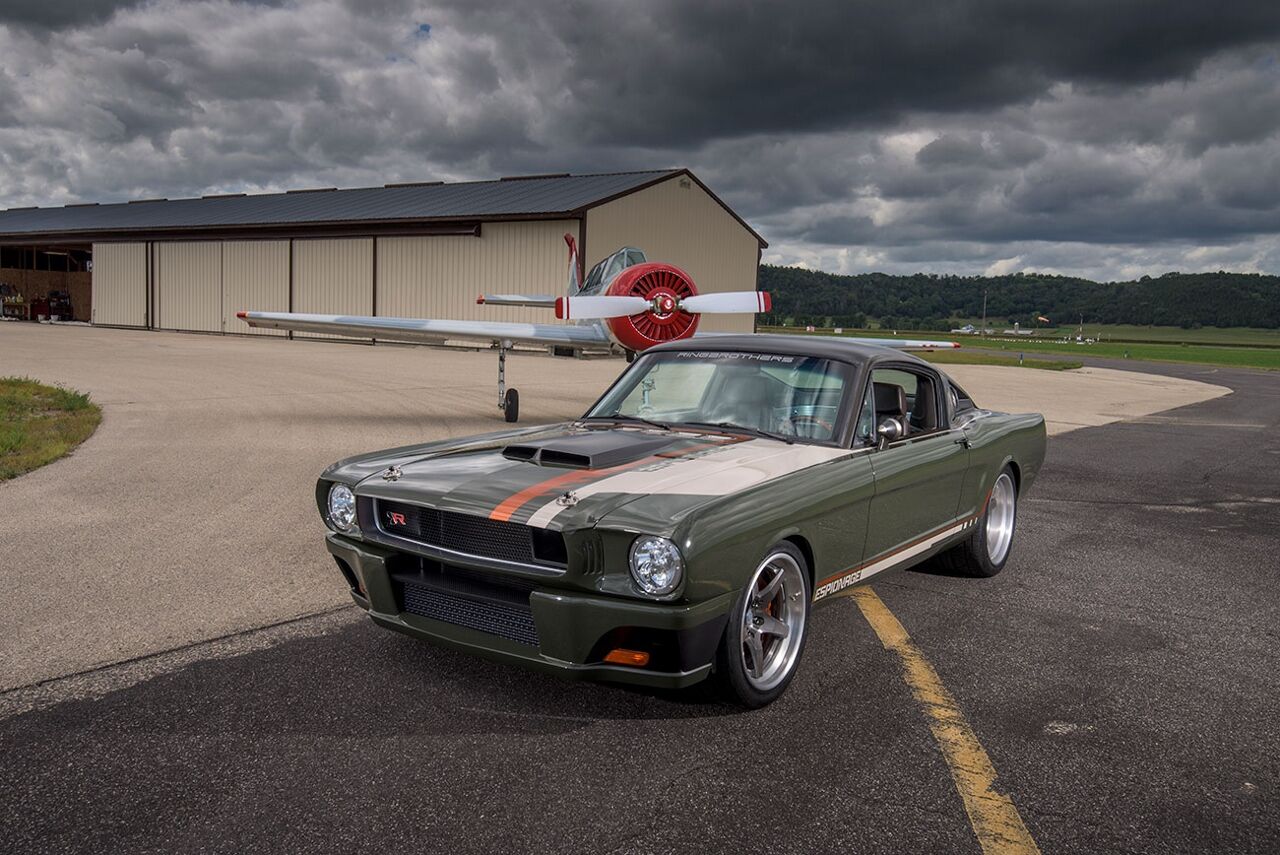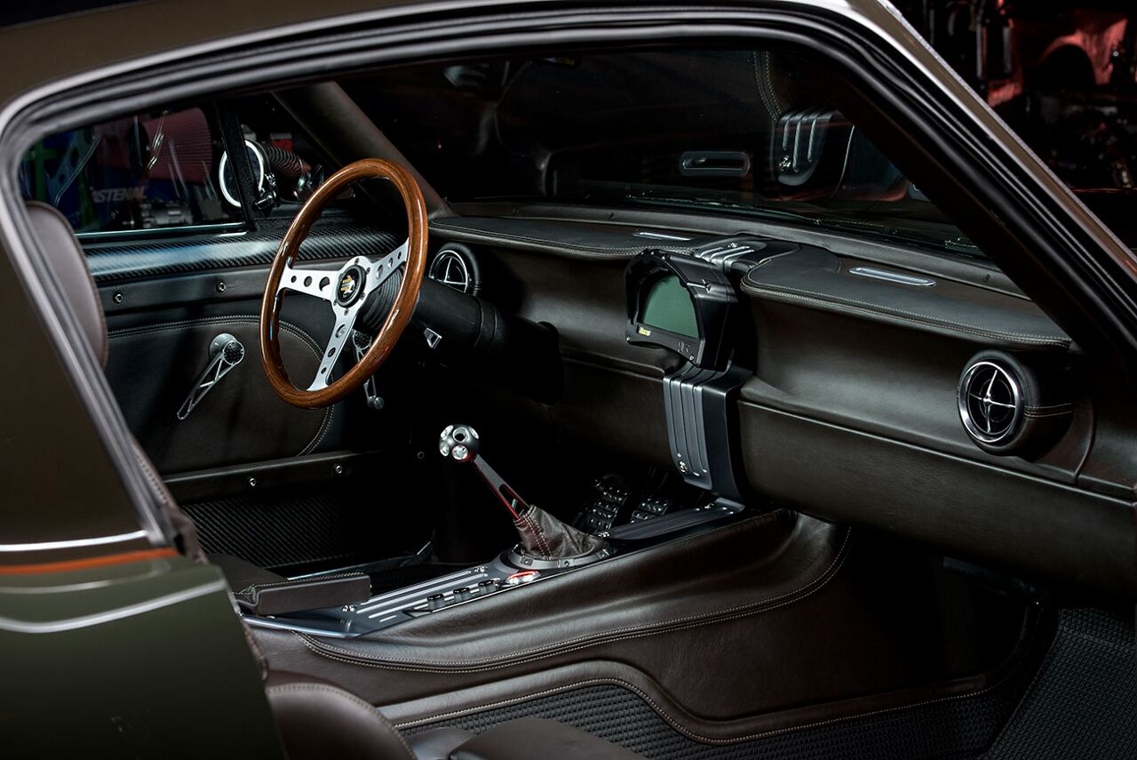 Lo último de estos hermanos ha sido nada más y nada menos que un Ford Mustang Fastback de 1965 con una carrocería 100% de fibra de carbono que se remata con una pintura verde de BASF denominada ‘Spy Green’.