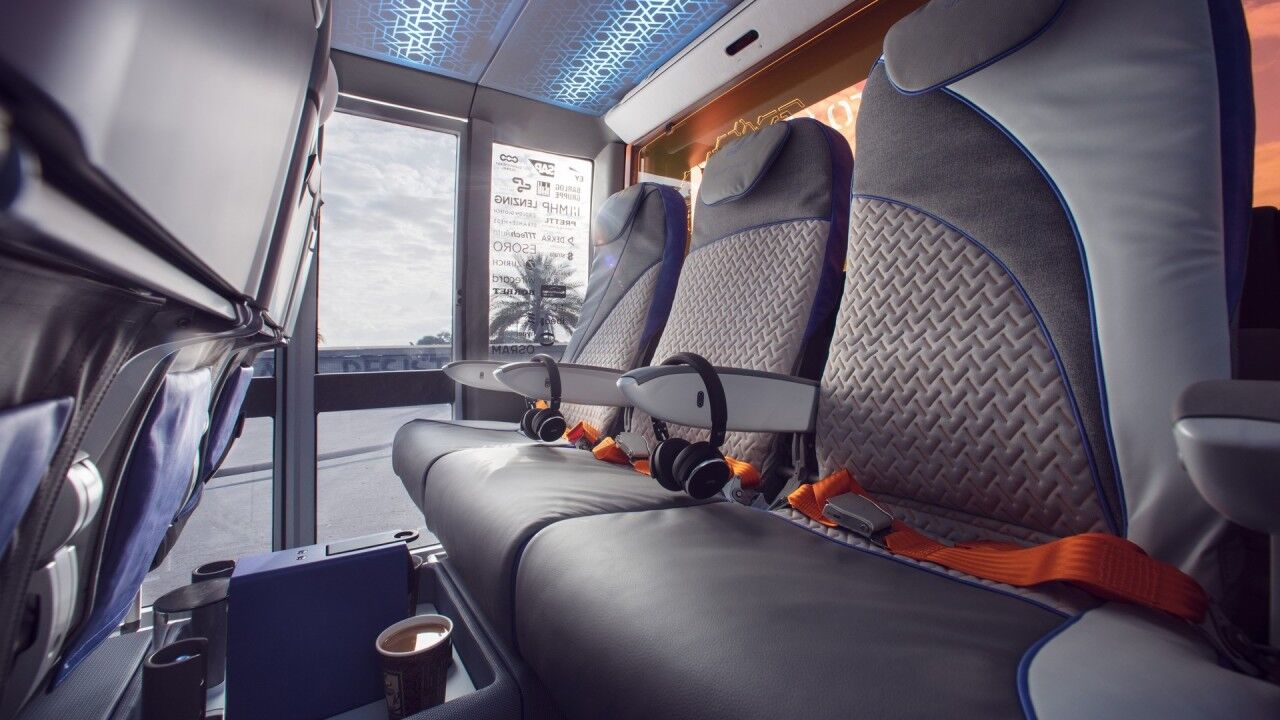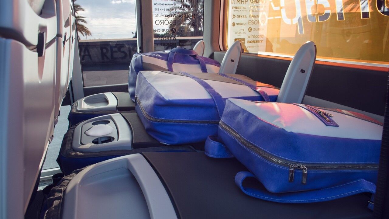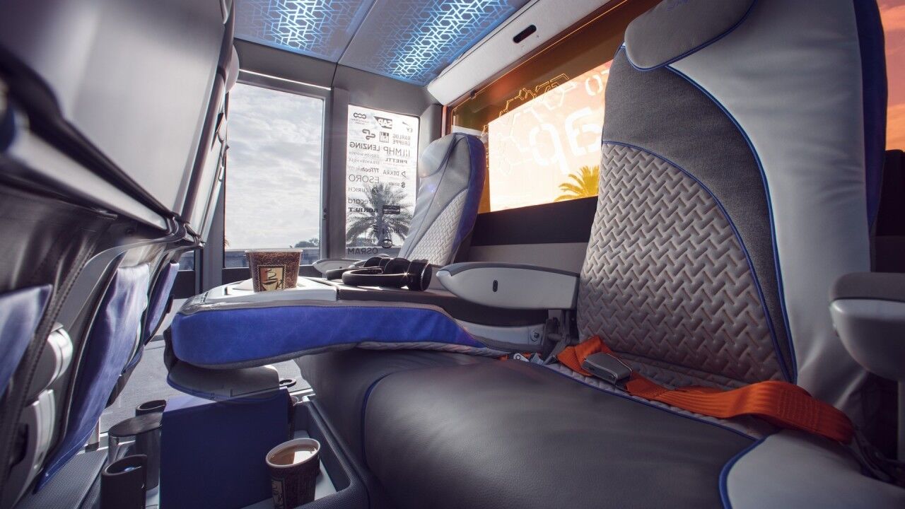 A nivel estético, podemos encontrar un juego de ruedas de 18 pulgadas, una placa de matrícula digital y luces LED de micro píxeles que pueden proyectar símbolos de advertencia en la carretera. En el interior, el habitáculo ofrece distintas pantallas digitales, iluminación ambiental ajustable y dos filas de asientos procedentes de un Boeing 737. Estos últimos están cubiertos de tejido de punto y se pueden plegar para crear espacio adicional destinado al equipaje.